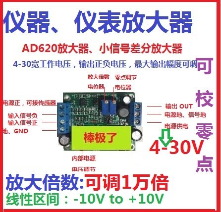 高精度毫伏 变送器模块 微伏信号差分电压AD620仪表放大器