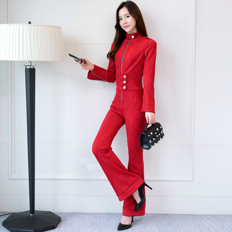 新款 连身裤 名媛气质时尚 显瘦微喇叭长裤 女 麂皮绒连体裤 2026秋冬装
