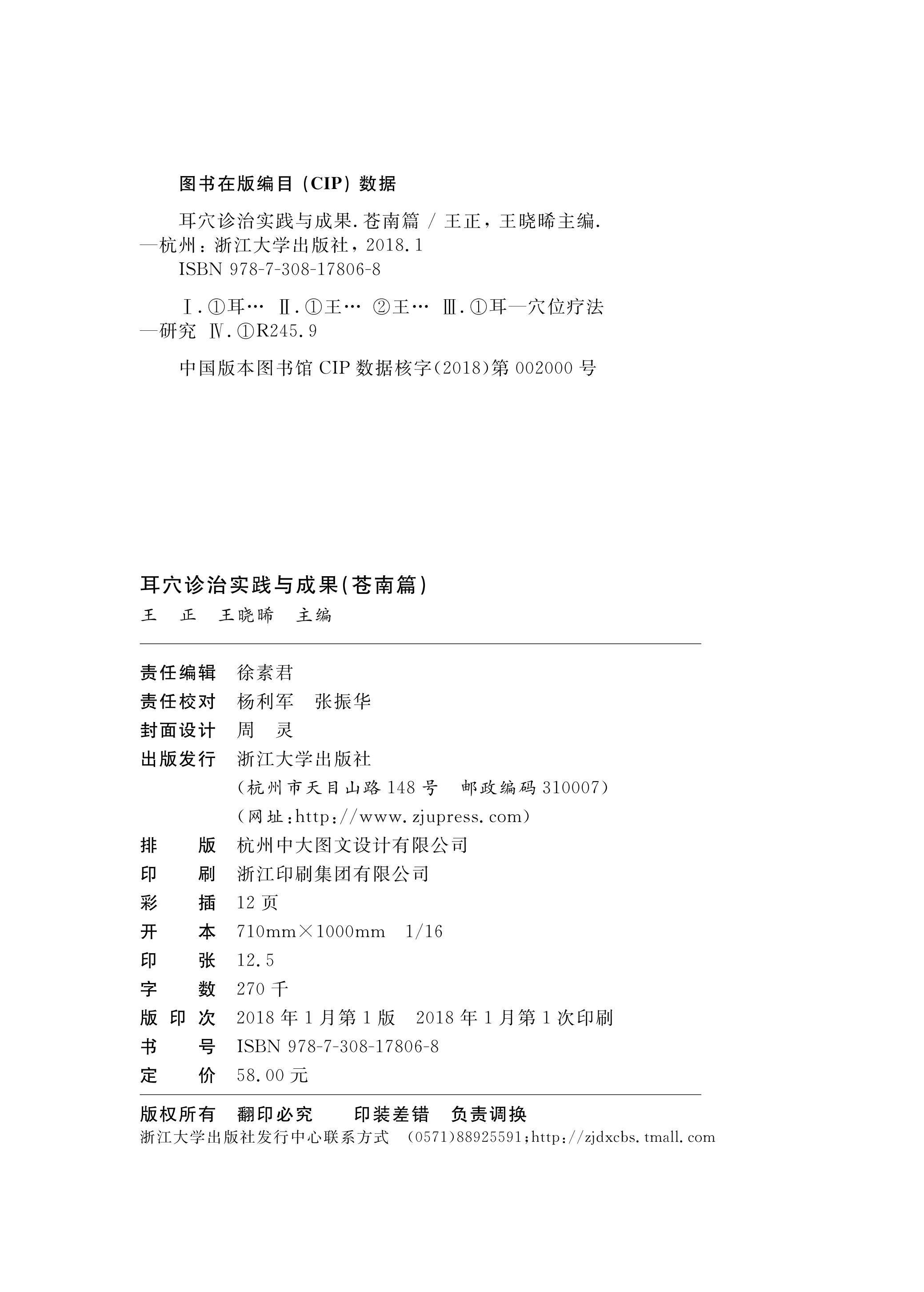 浙江大学出版 耳穴诊治实践与成果 王晓晞 王正 社 苍南篇