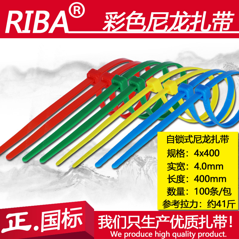 红黄色蓝绿色塑料4x400mm正国标尼龙扎带收纳理线长扎带新料 包邮