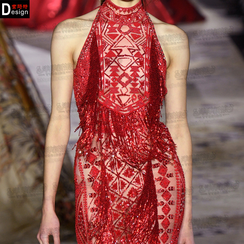 红色敬酒服2023新款 结婚性感露背流苏中长裙名媛生日宴酒会晚礼服