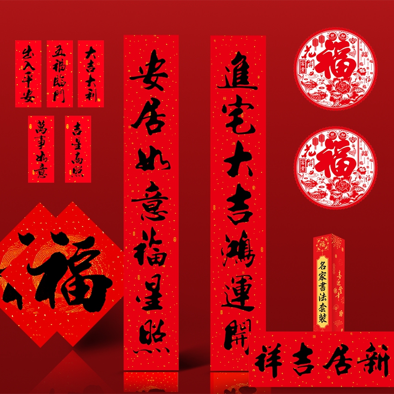 对联2026马年春节烫金年画家用福字门贴新乡镇黑字春联大礼包年货