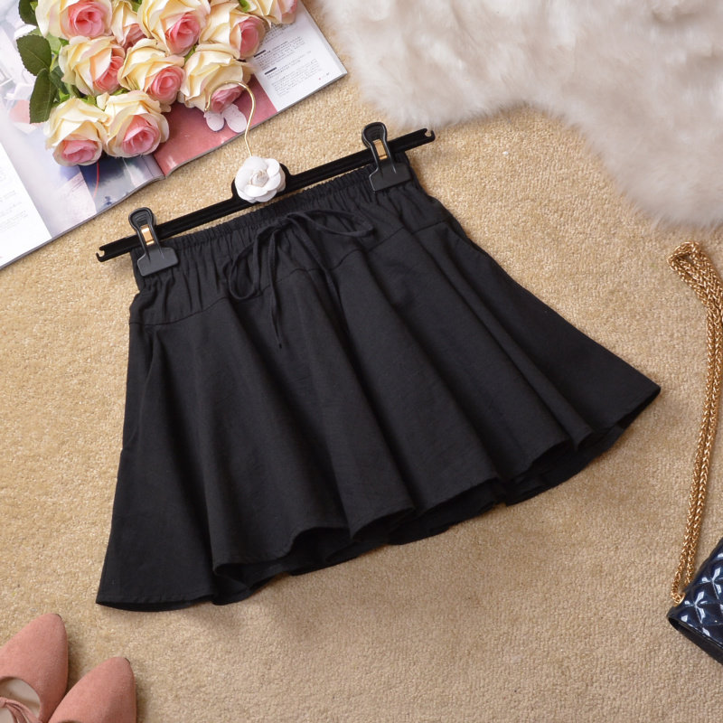2022夏季 高腰棉麻短裙松紧腰蓬蓬裙百褶防走光半身裙女伞裙子 新款