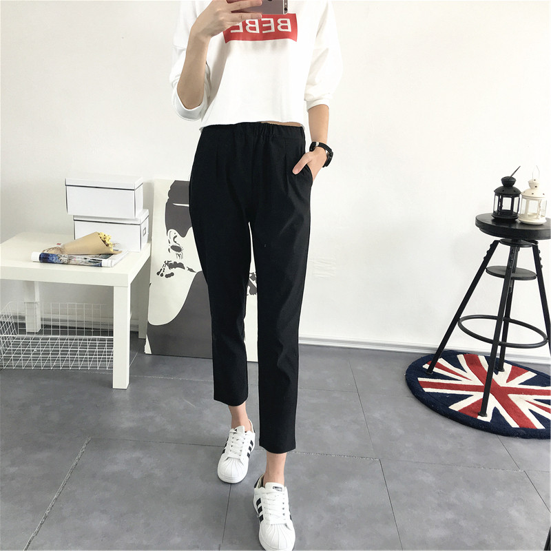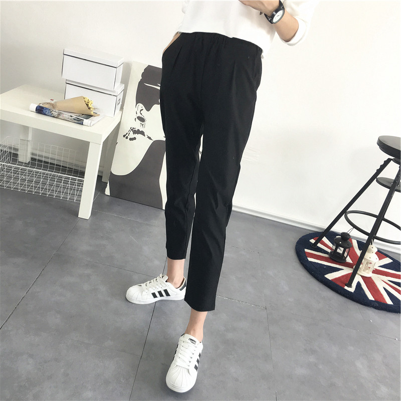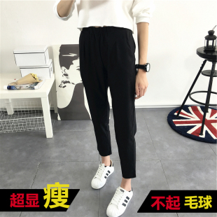 韩版 小脚裤 夏秋黑色休闲西装 女通勤显瘦百搭弹力哈伦裤 子潮 裤 新款