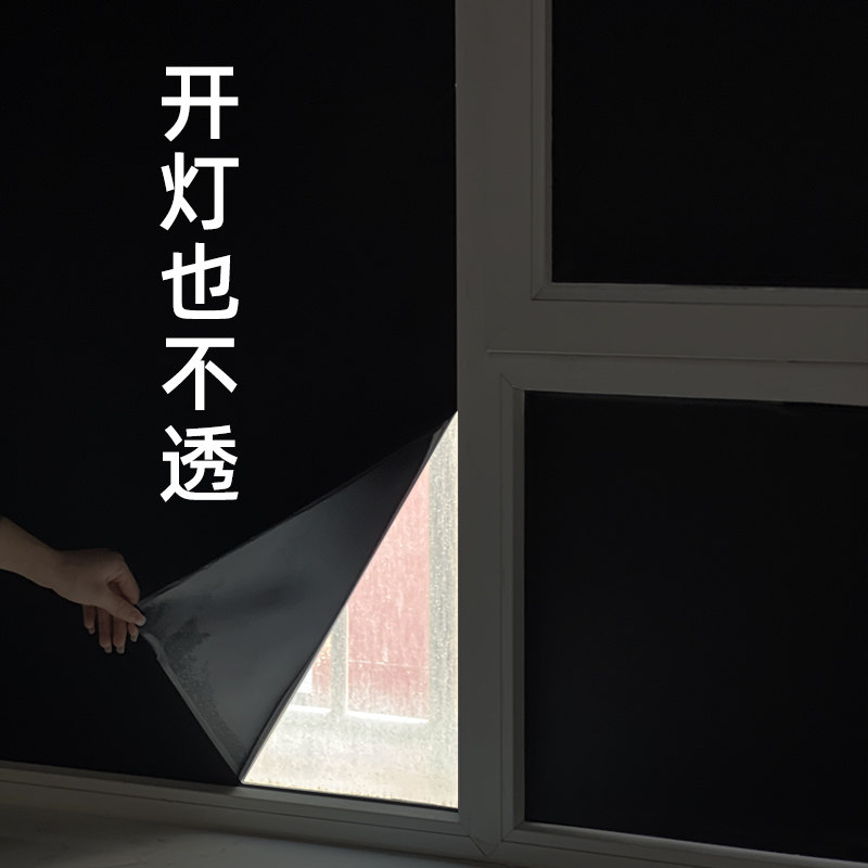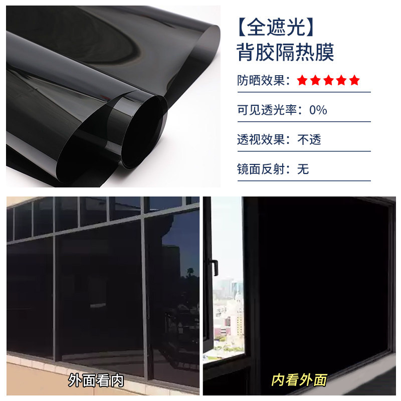 黑色全遮光贴膜遮阳隔热防晒防紫外线不透光挡光静电窗户玻璃贴纸