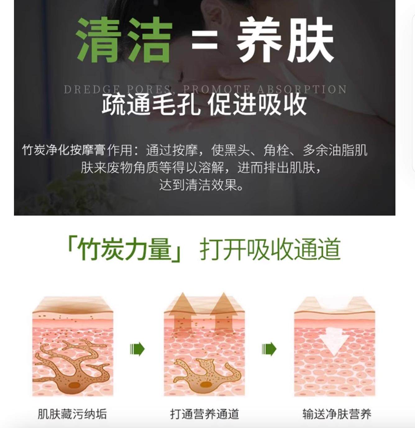 竹炭按摩膏霜面部净化焕颜深层清洁脸部毛孔美容院按摩补水保湿 膏