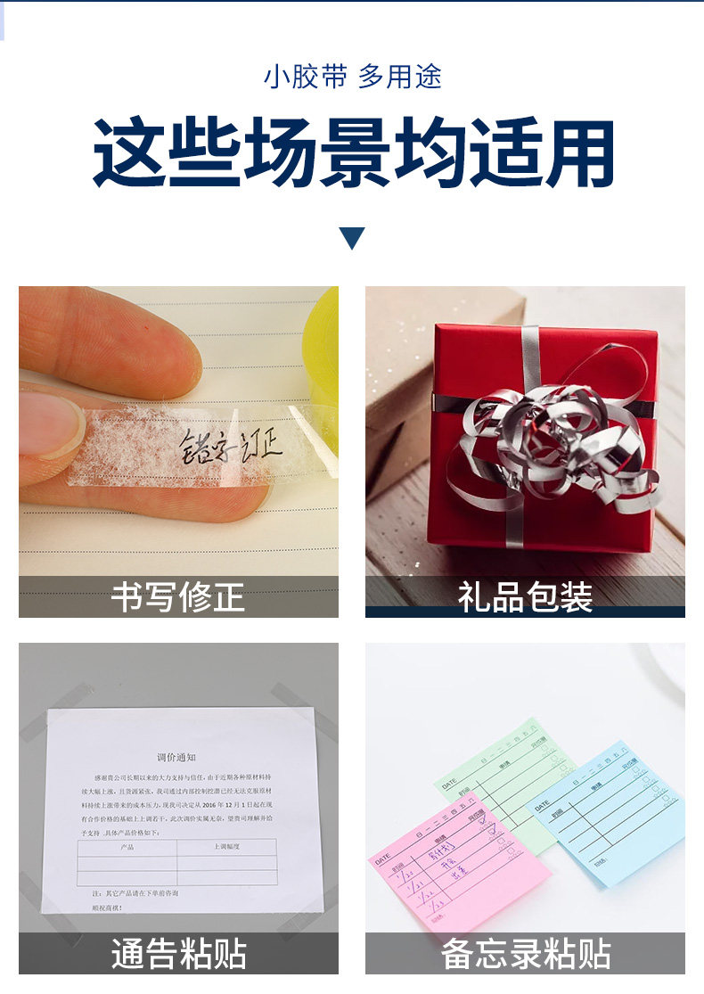 透明胶带文具小学生用小卷宽1.01.6cm胶条胶纸细胶带通粘错字花店