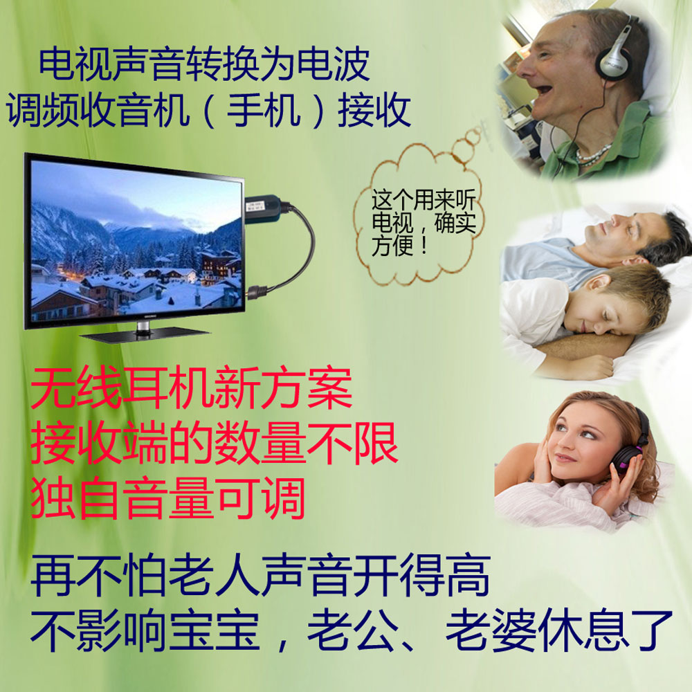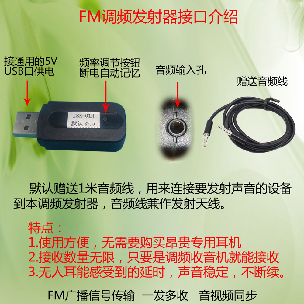 立体声调频音频FM发射器3.5mm无线耳机电视电脑手机汽车载通用USB