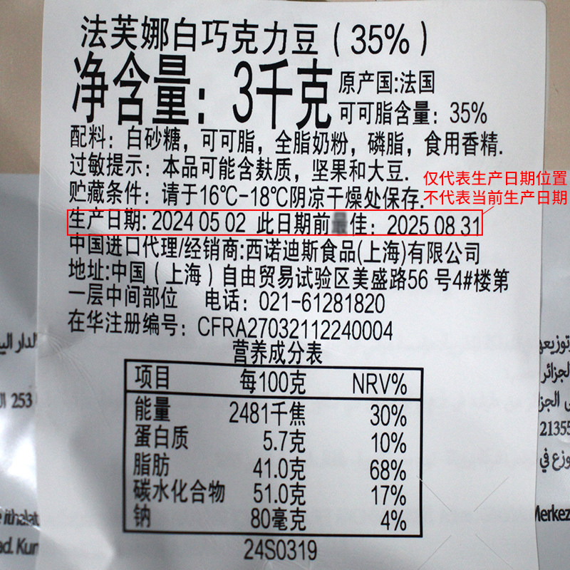 法芙娜伊芙瓦35%白巧克力币3kg法国原装 饰烘焙DIY 进口西点可可装