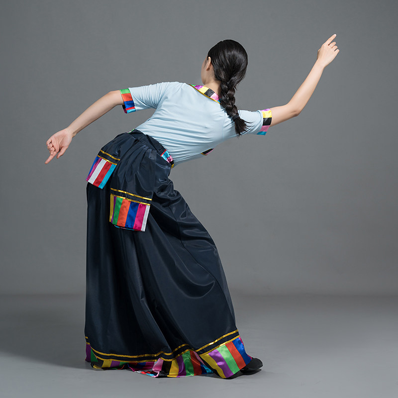 藏族舞蹈练习裙藏族裙藏舞上衣藏舞水袖 女北舞藏舞课堂裙 藏族服装