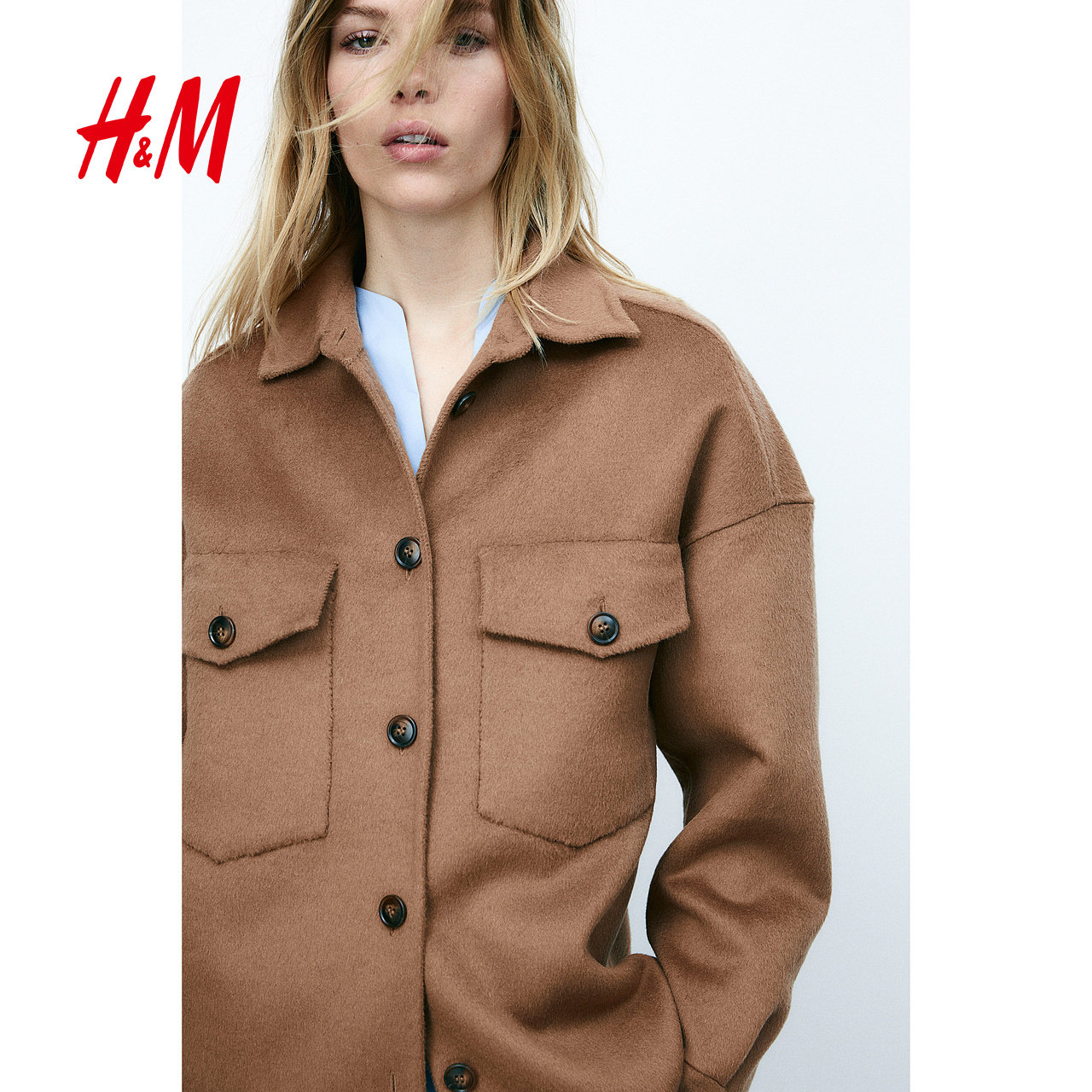式 手工羊毛混纺衬衫 外套1265323 女装 HM冬季
