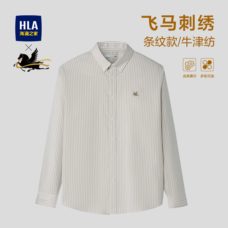 飞马刺绣外套衬衣男装 HLA 26春夏新时尚 休闲条纹衬衫 海澜之家长袖