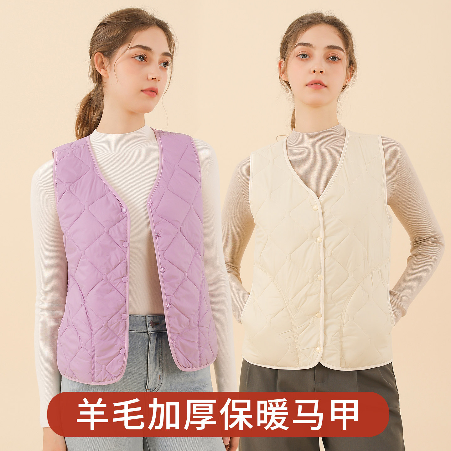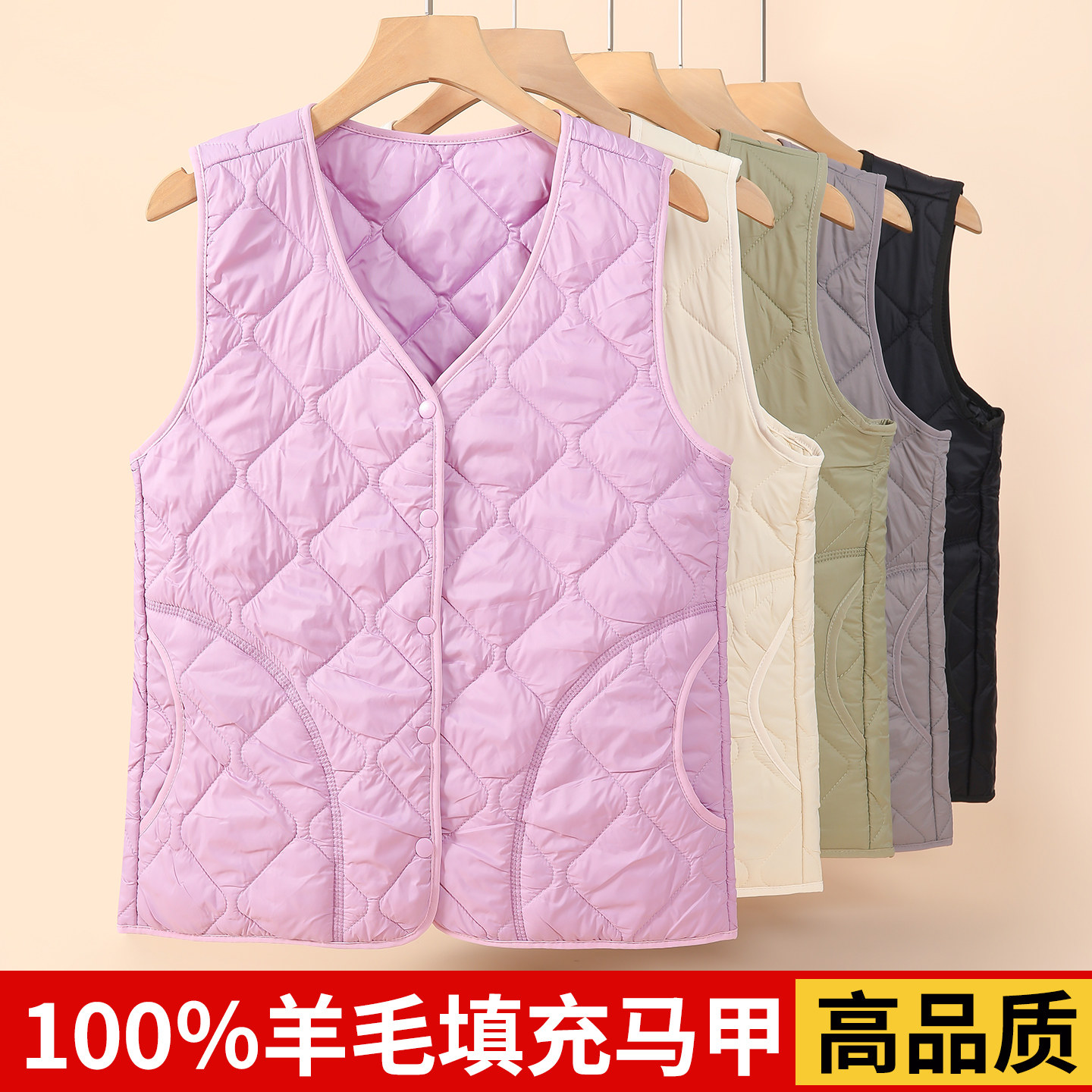 轻薄羊毛马甲女外穿冬2025新马夹羽加绒坎肩大码 内穿保暖背心内胆