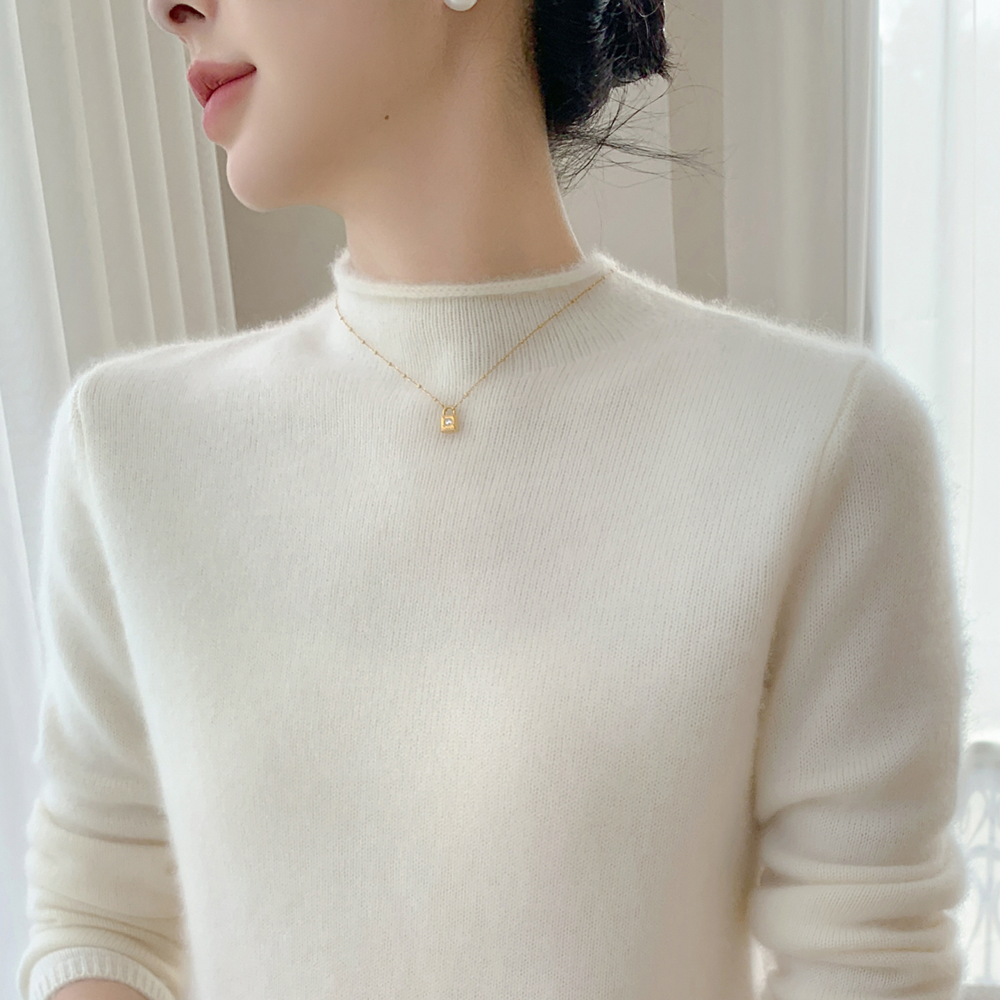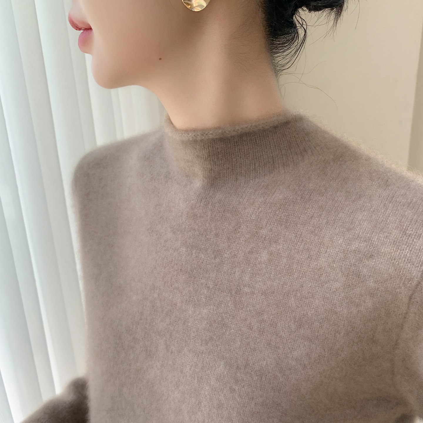 秋冬新款 鹿王羊绒衫 女士半高领平针纯色套头轻薄百搭打底针织衫