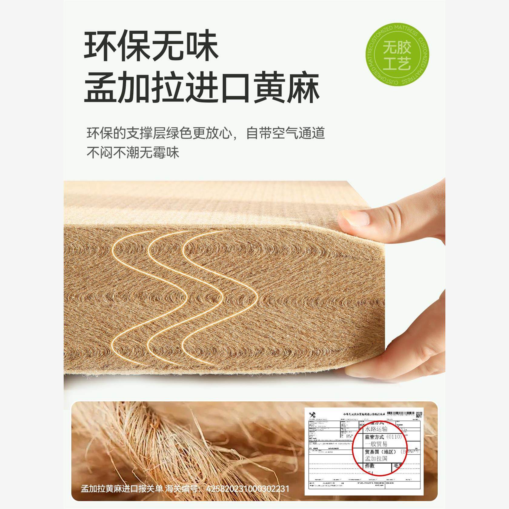 希尔顿酒店专用床垫家用卧室1米5x2米床垫s型精细黄麻a类母婴级薄
