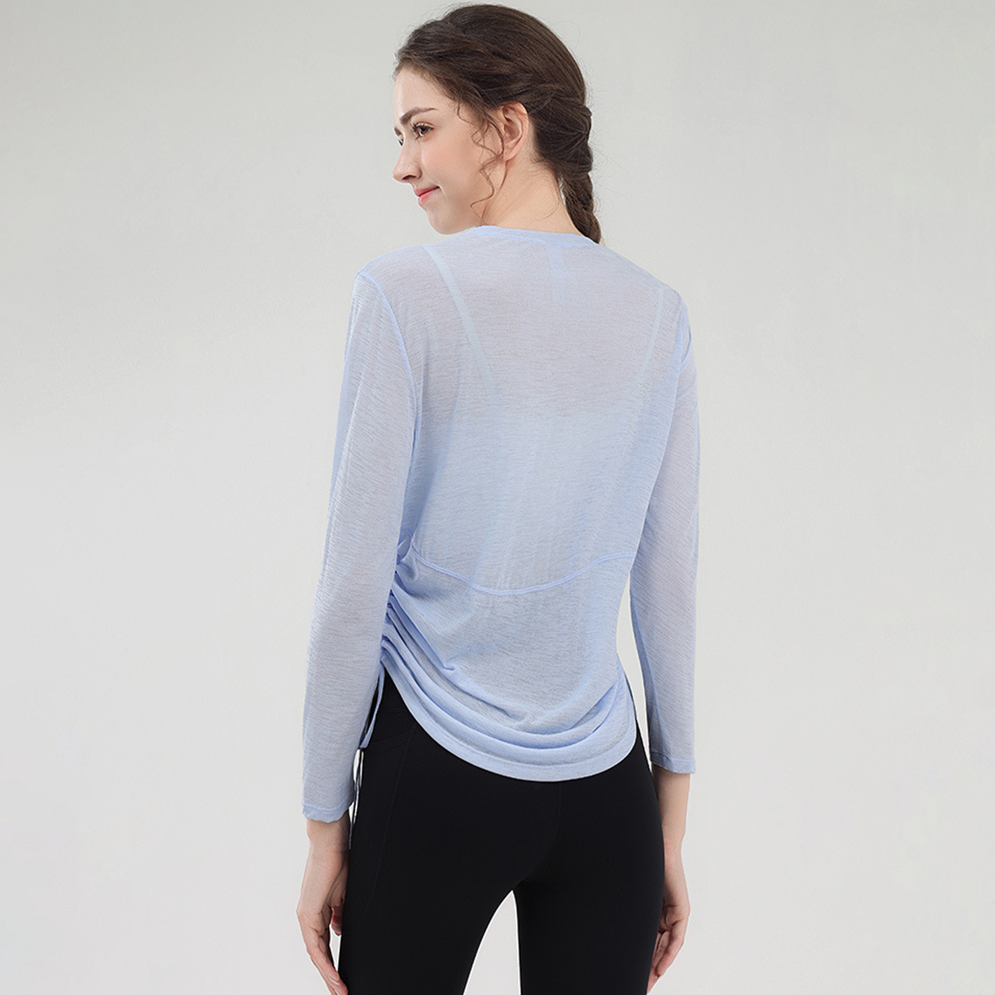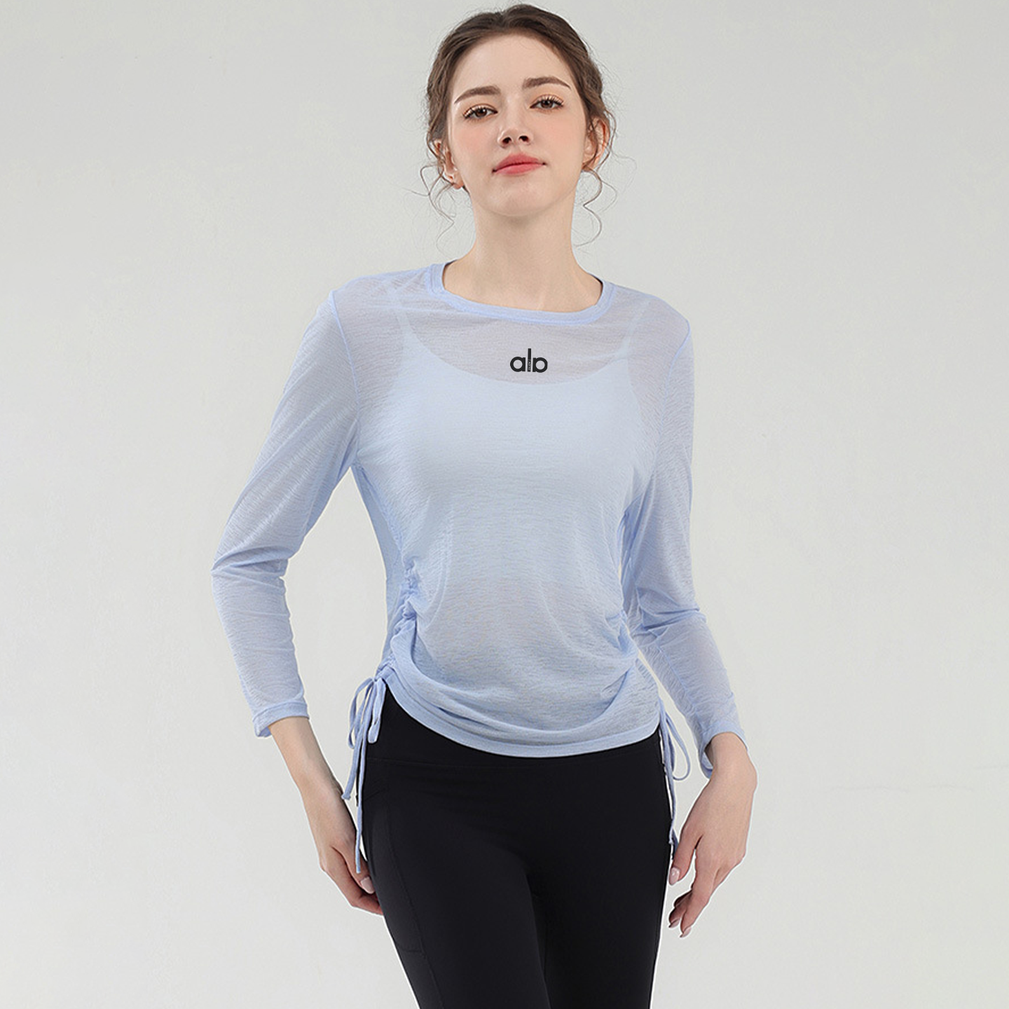 ALOACTIVE瑜伽服女宽松垂感抽绳长袖 运动健身透气褶皱速干衣 罩衫
