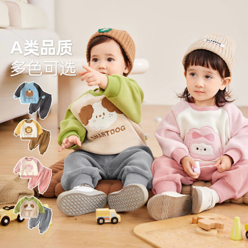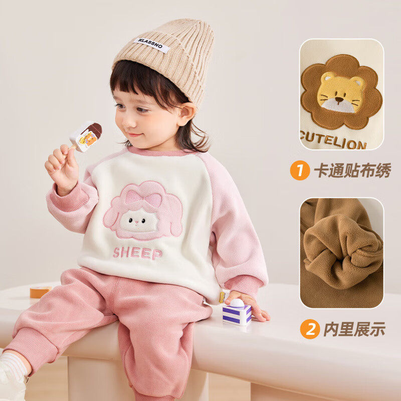 慵懒风宽松套装 套组女微胖大码 kt刺绣毛领卫衣外套长裤 安妮不火