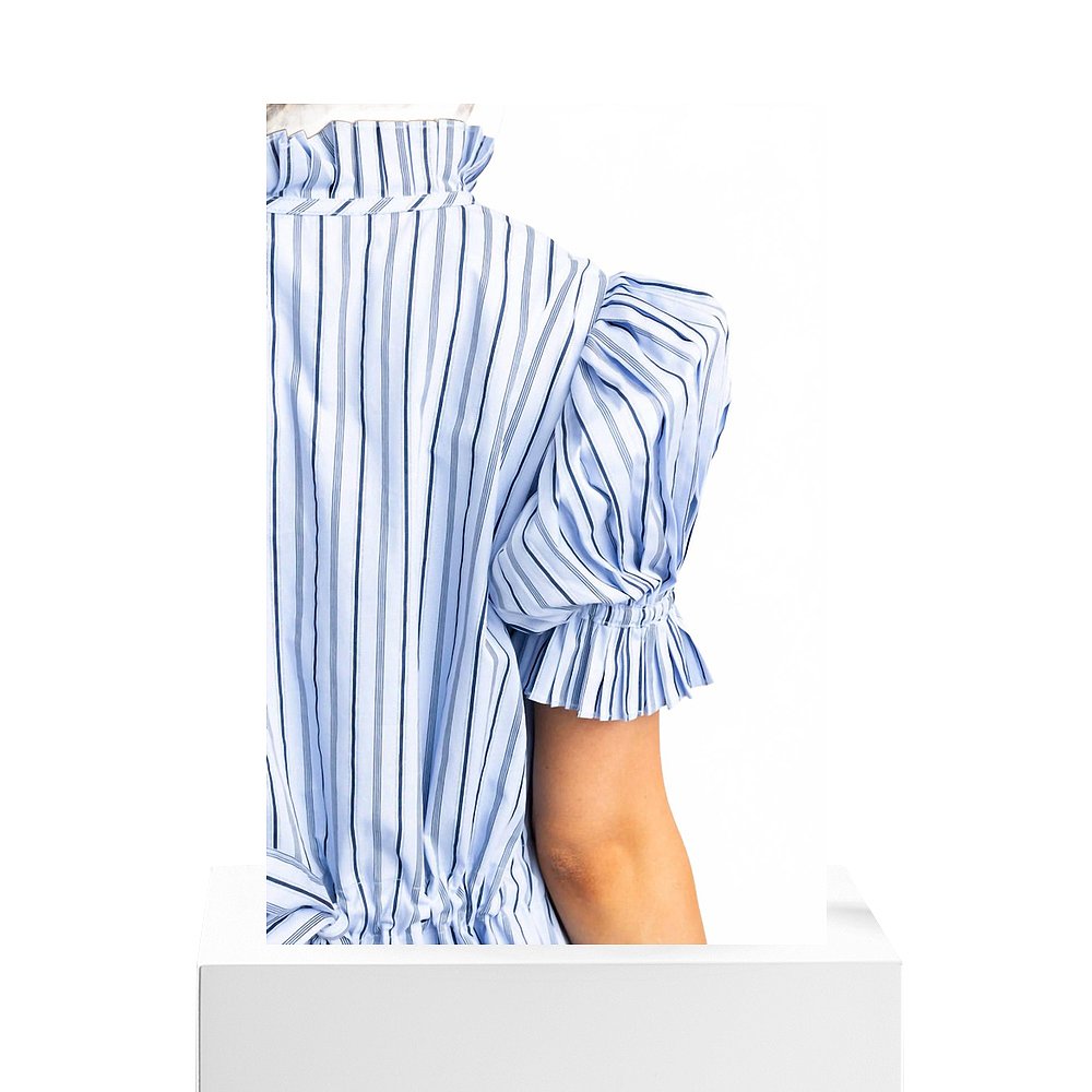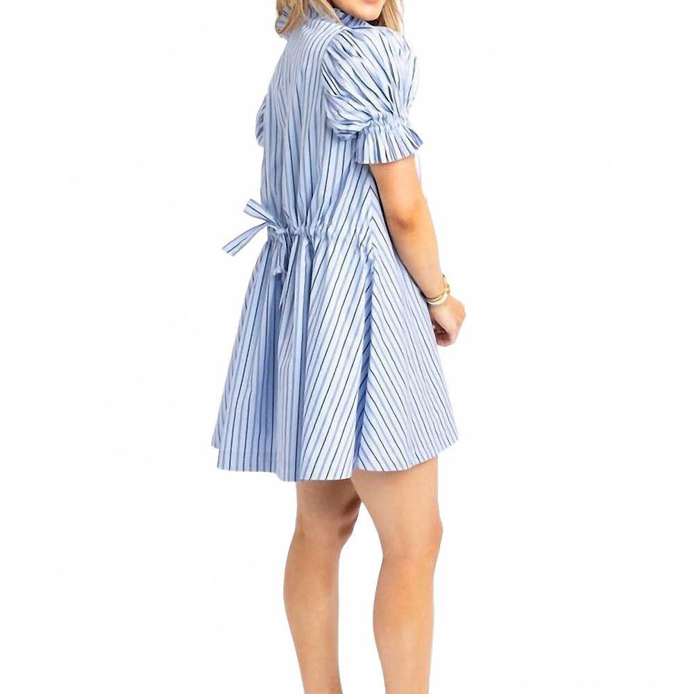 美国奥莱直发 迷你连衣裙 自营karlie蓝色条纹府绸褶袖 衬衫