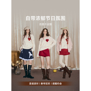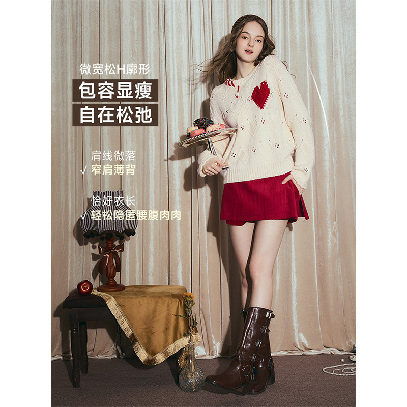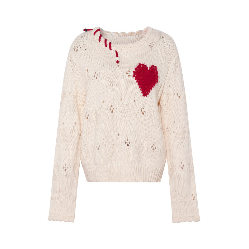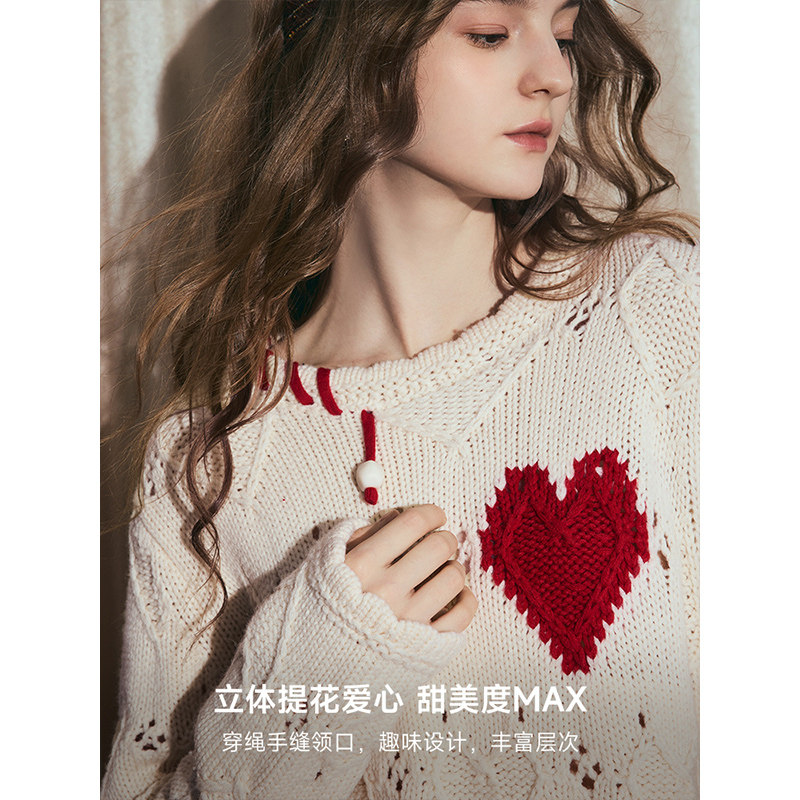 两三事北国雪夜甜美爱心图案镂空针织衫 柒柒Moon直播间