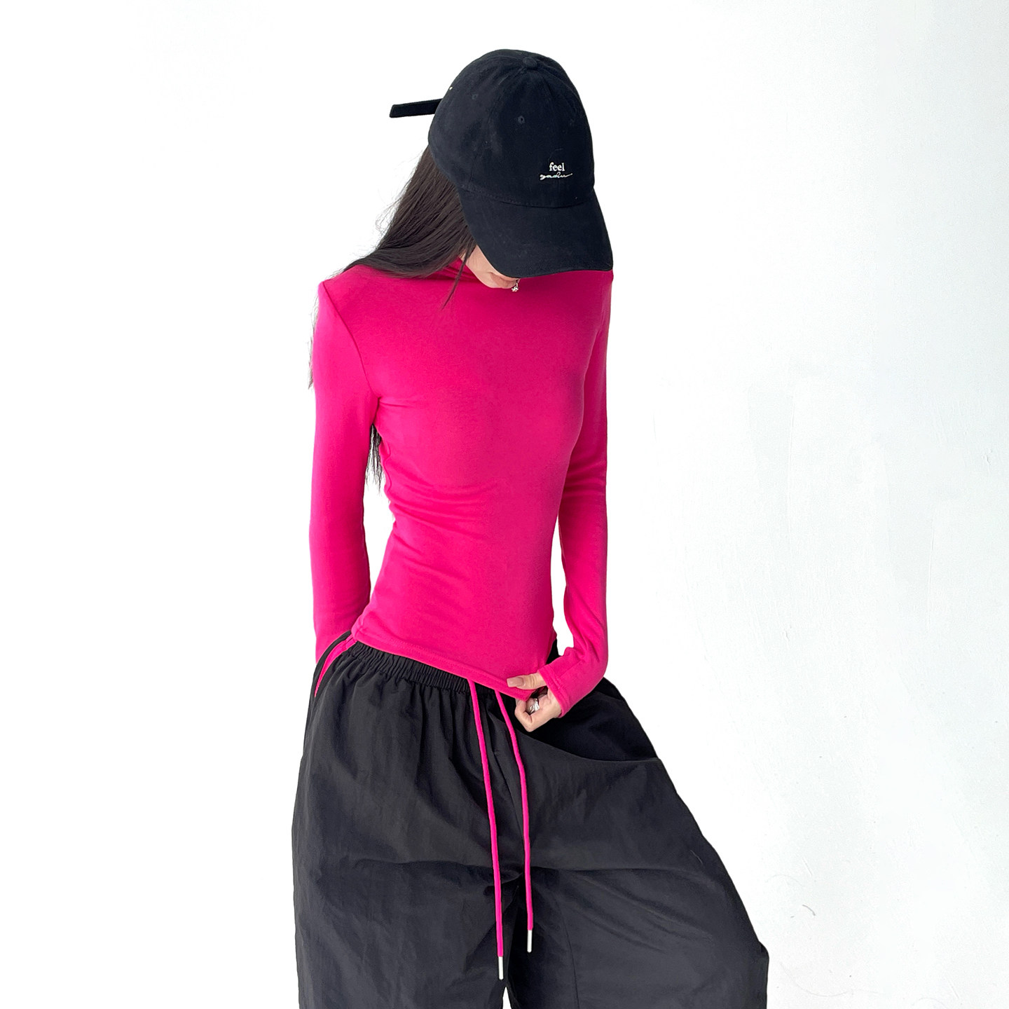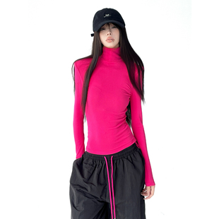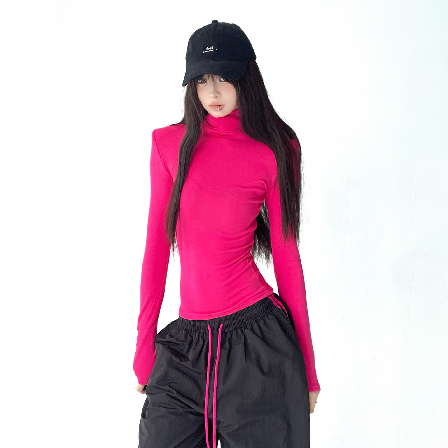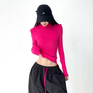 内搭长袖 高领修身 新款 女2025秋冬装 上衣中领高个子正肩t恤 打底衫