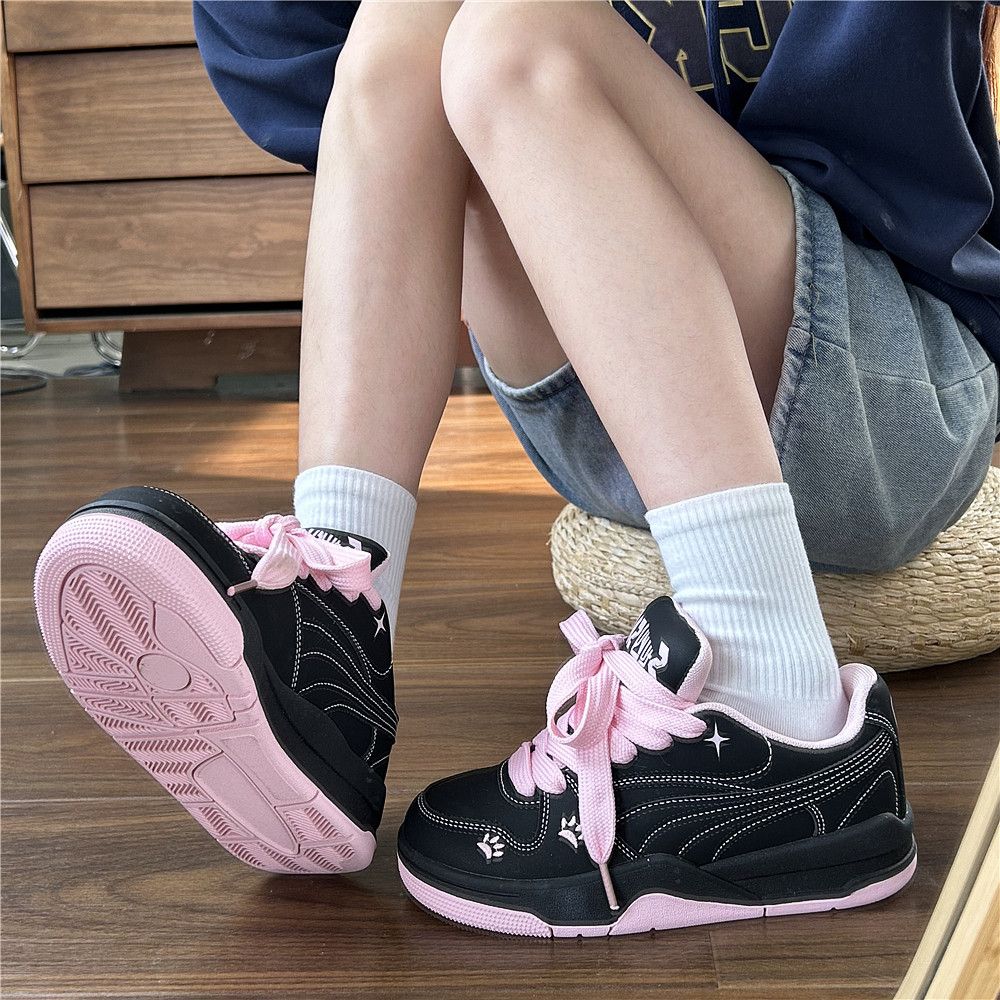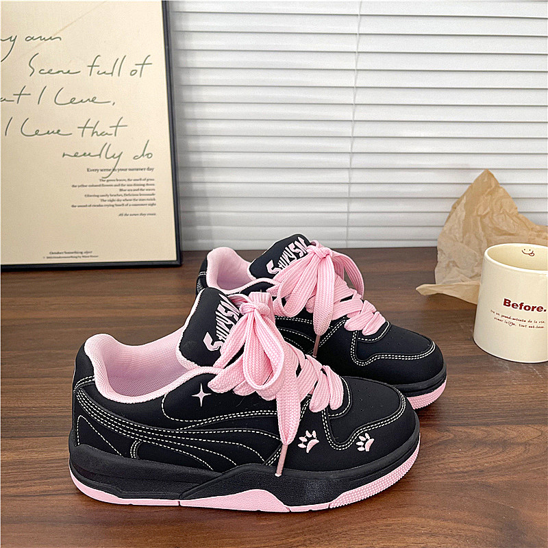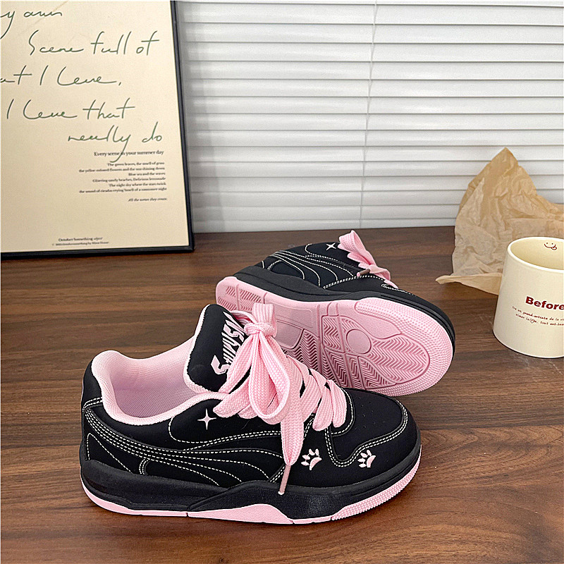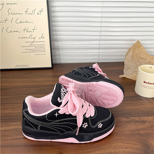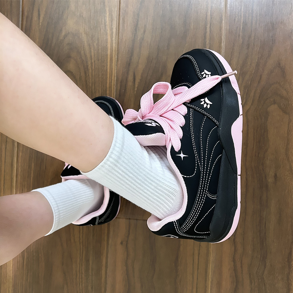 2026新款 学生小白鞋 女百搭运动休闲板鞋 黑粉色原创小众厚底面包鞋