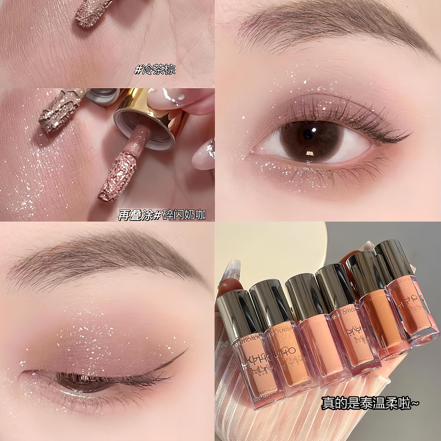 低饱和灰粉奶咖哑光液体眼影单色细闪纯欲风大地色雾感女小众