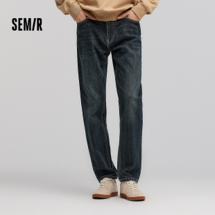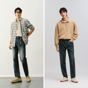 子轻复古打磨做旧水洗长裤 森马牛仔裤 竹节肌理合体直筒裤 春装 男士