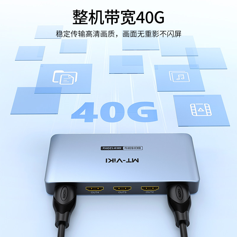 电脑连接投影仪电视机 SP184 HDMI2.1分配器1分4超清8K60Hz工业级分屏器一进四出 迈拓维矩
