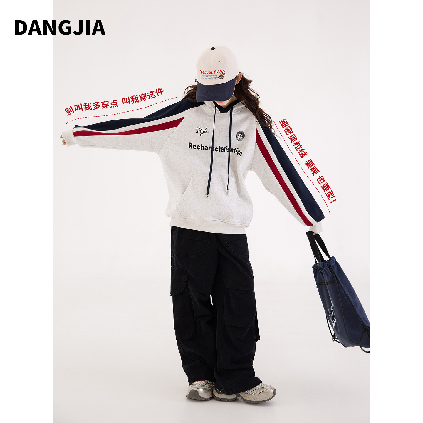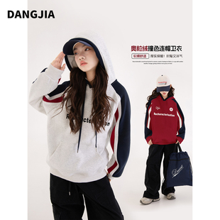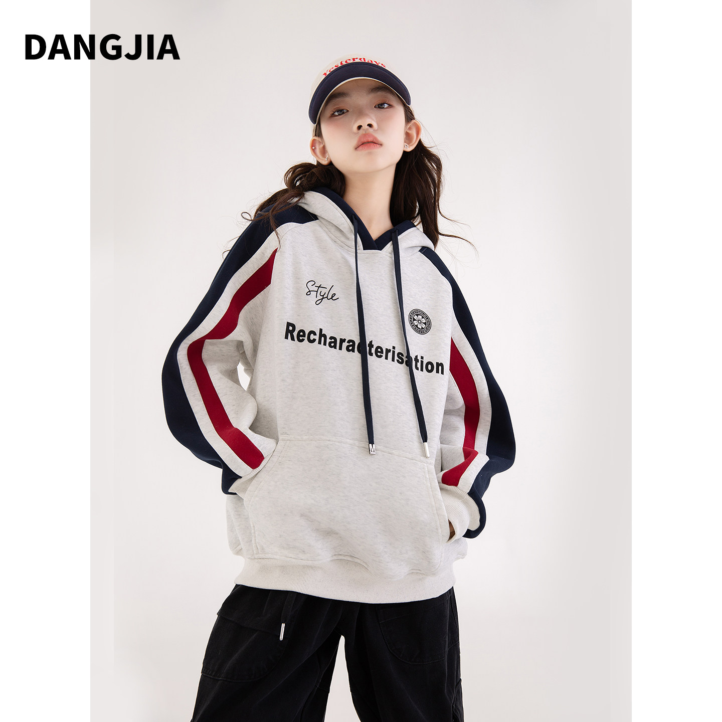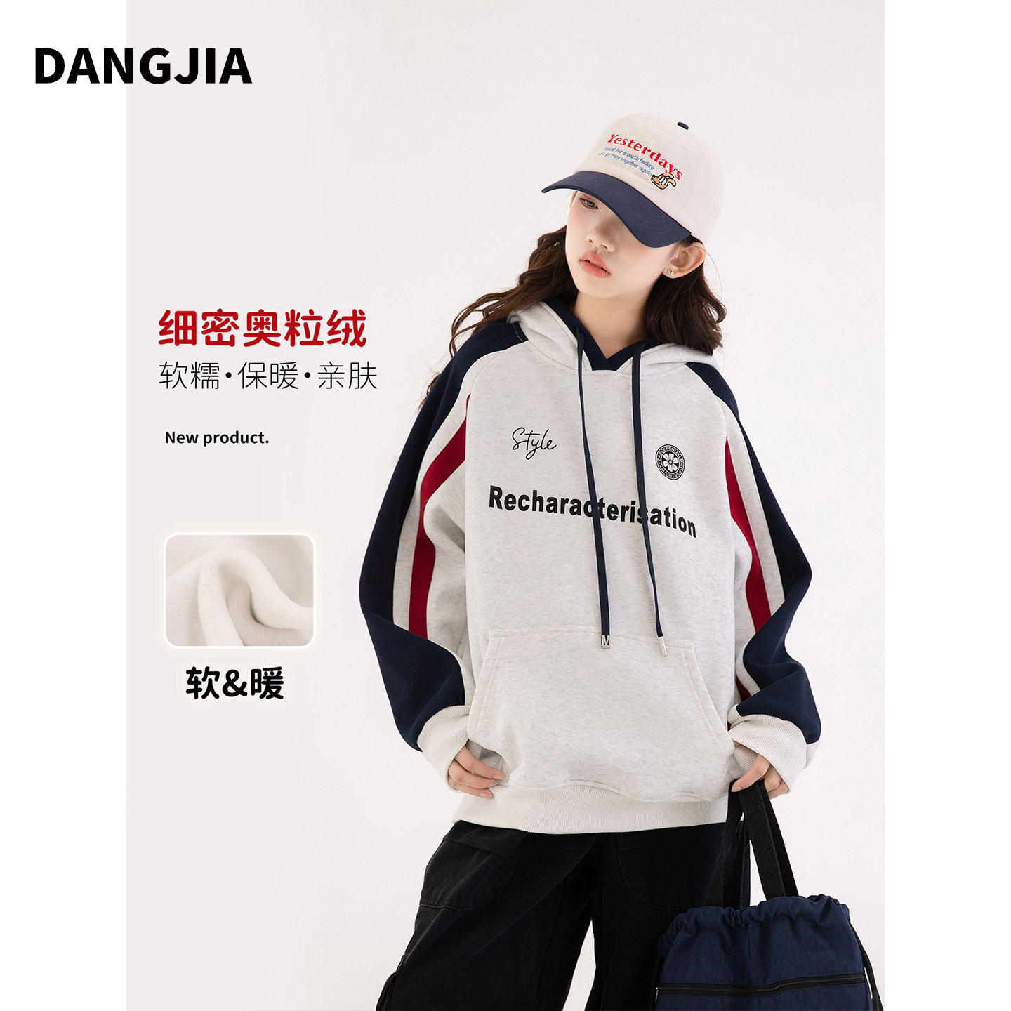 连帽冬装 女大童加绒卫衣2025新款 秋冬儿童加厚保暖上衣初中生美式