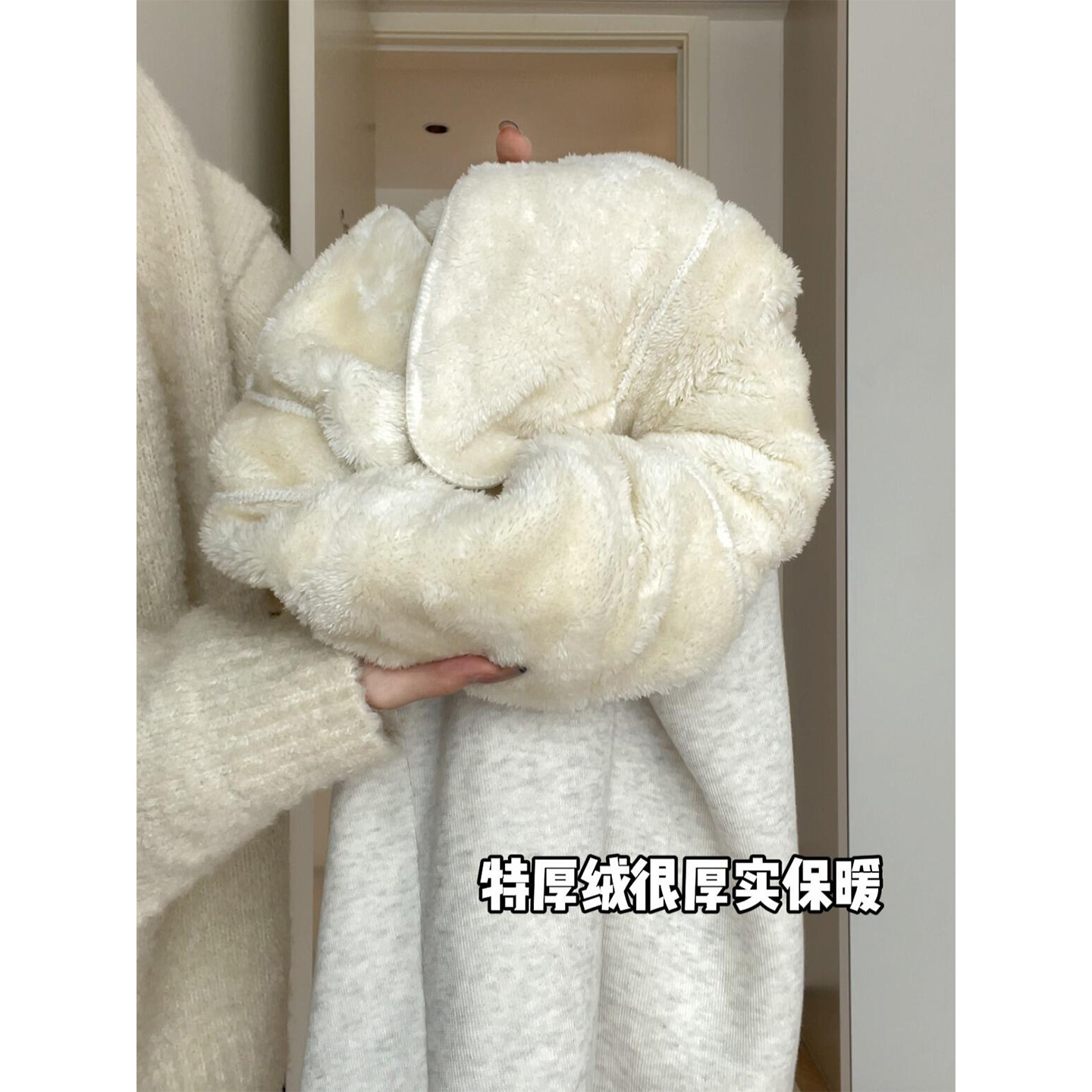 高腰宽松运动束脚东北羊羔绒棉裤 白色加绒加厚卫裤 女秋冬2025新款