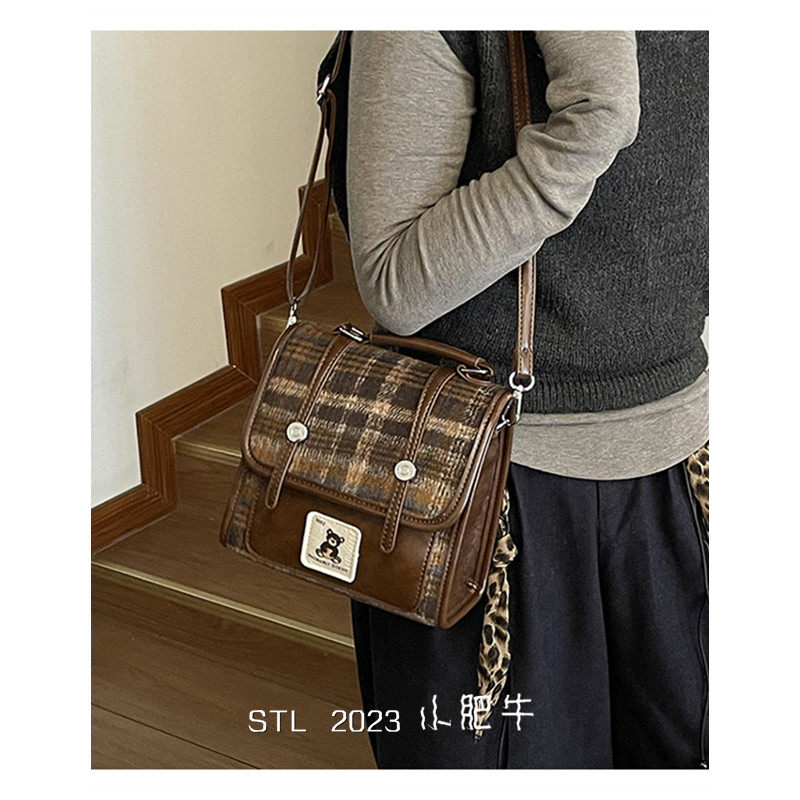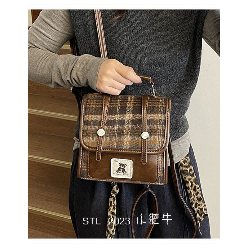 英伦复古格纹剑桥双肩包包女高级感学院风小众书包2026新款 小背包