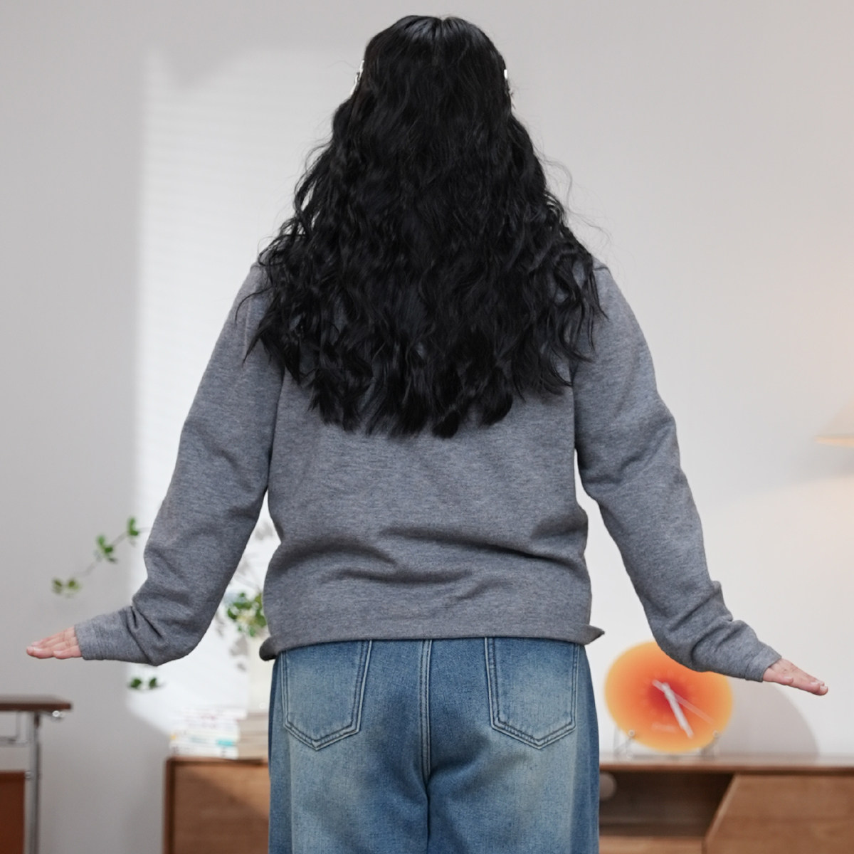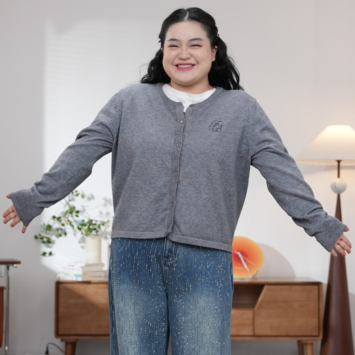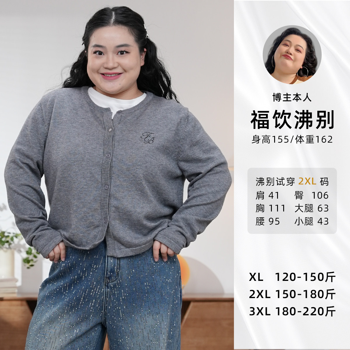 胖mm秋冬新款 大码 圆领灰色针织上衣YP25111 青稞泡泡 福饮沸别