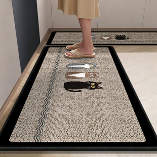 亚麻厨房地垫专用防滑防油吸水垫门口耐脏脚垫家用免洗长条地毯