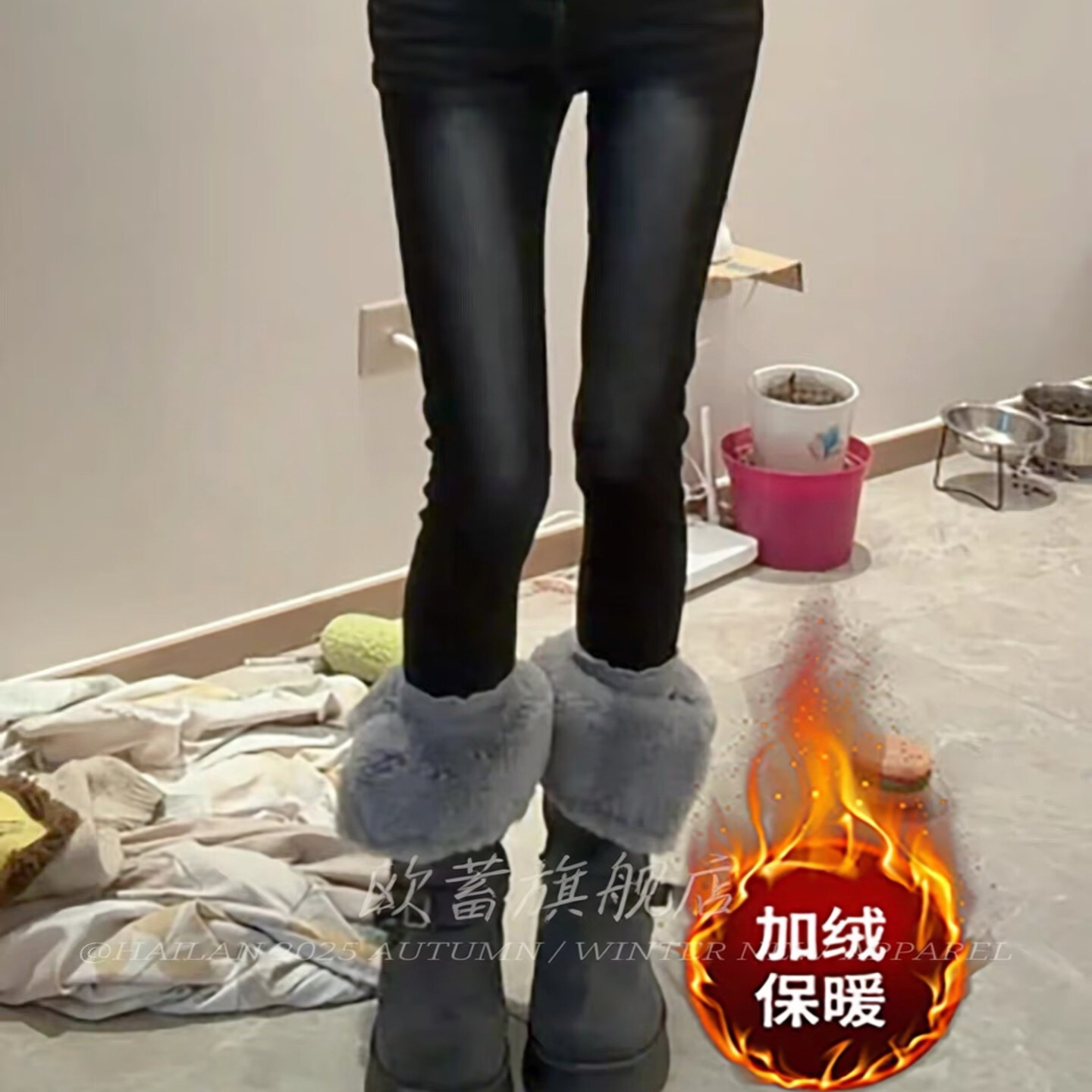 秋冬刚需加绒黑灰色丰胯九分牛仔裤 女高腰紧身提臀显瘦百搭小脚裤