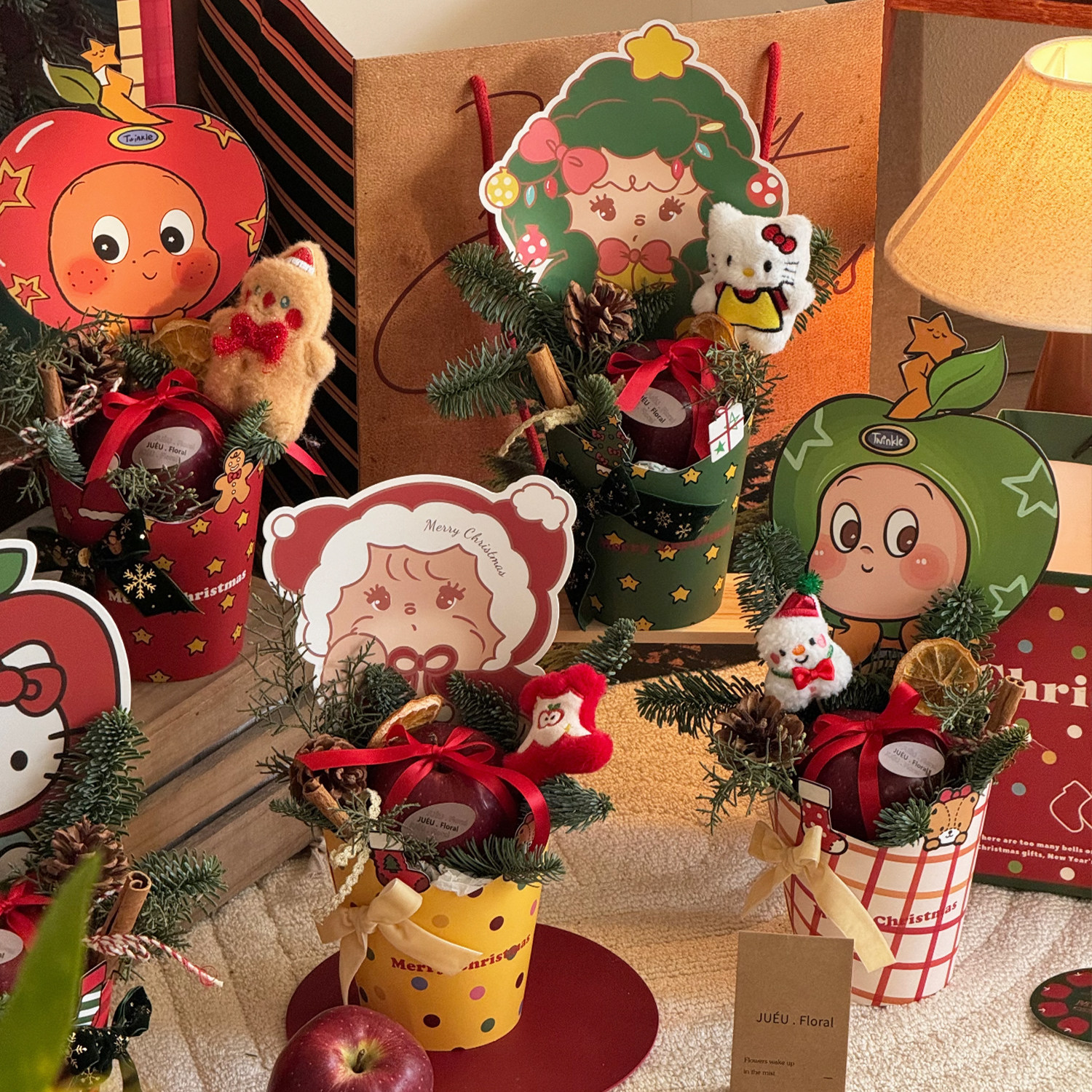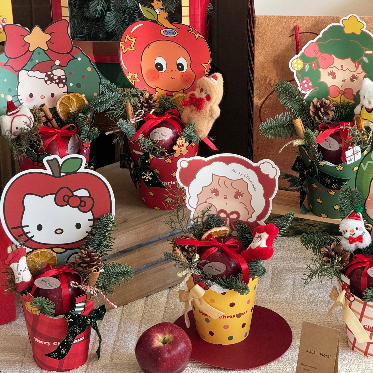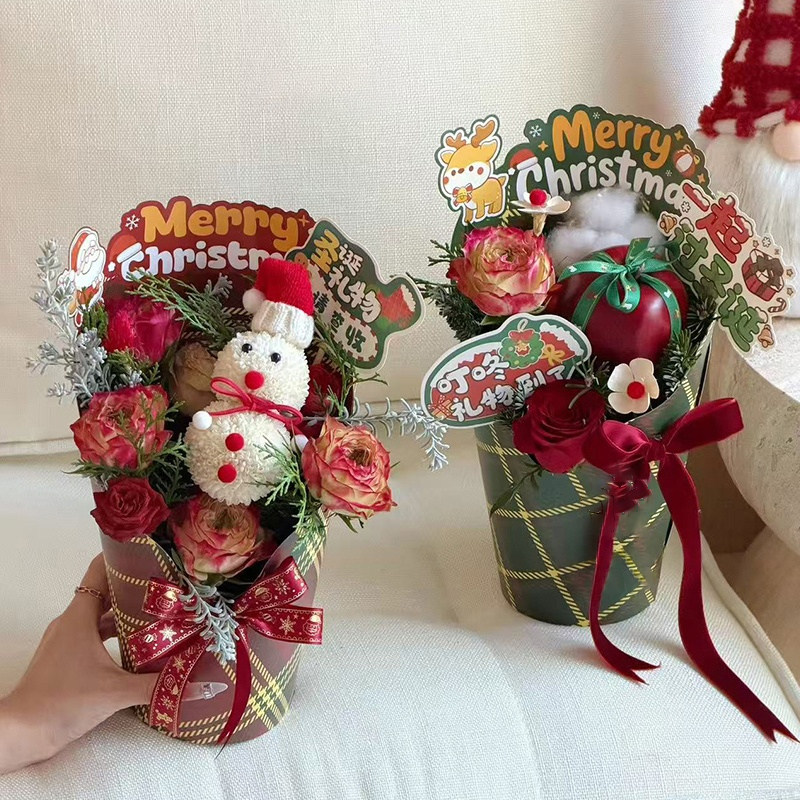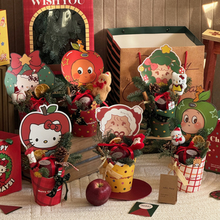 星语 盒 圣诞节平安夜苹果圆盒手提盒diy鲜花束插花盒礼物礼品包装