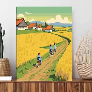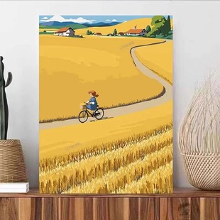 风吹麦浪装 饰画成品仿油画风景金色田园治愈系唯美卧室客厅摆挂画