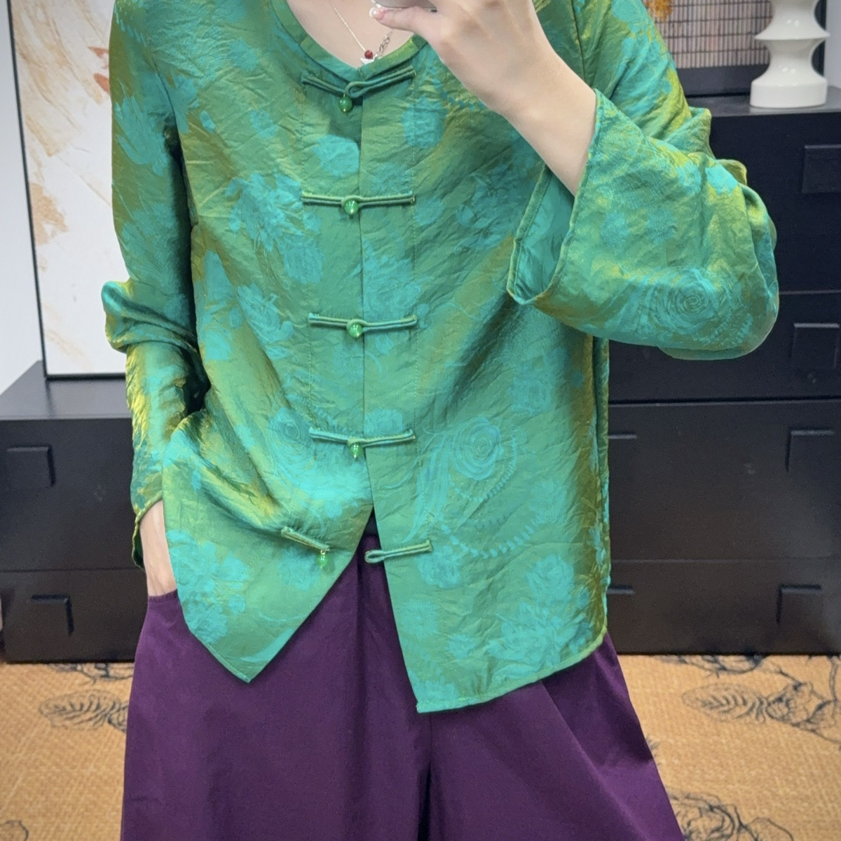 童心家秋上新高密度人丝腰果花蝴蝶短外套WX421