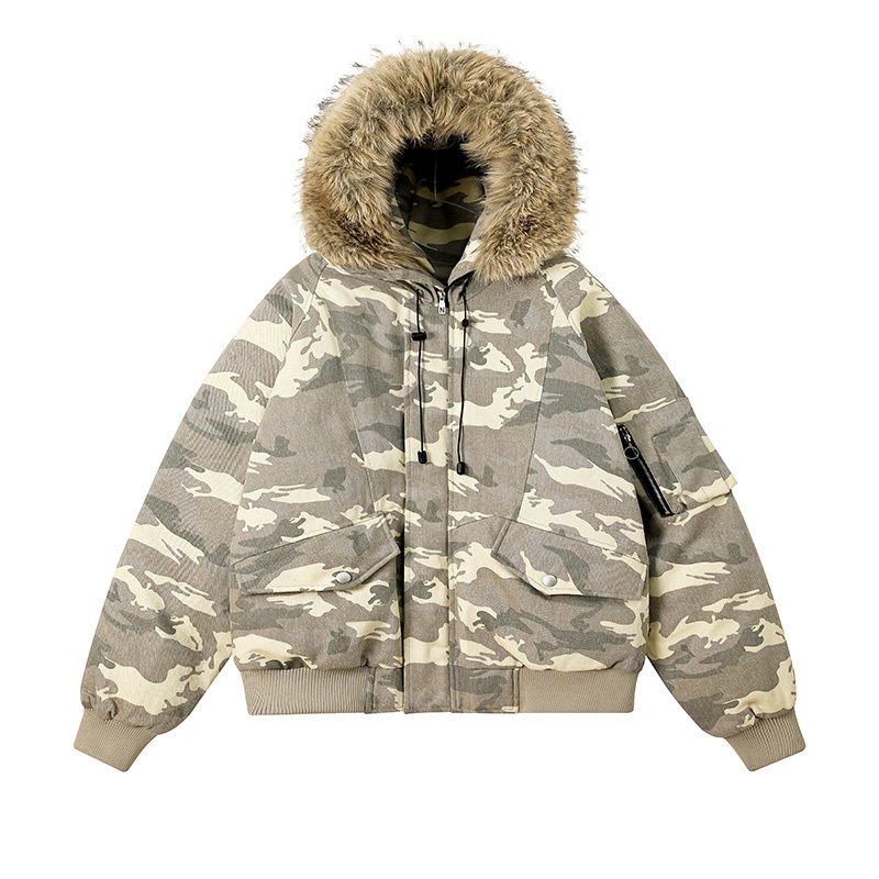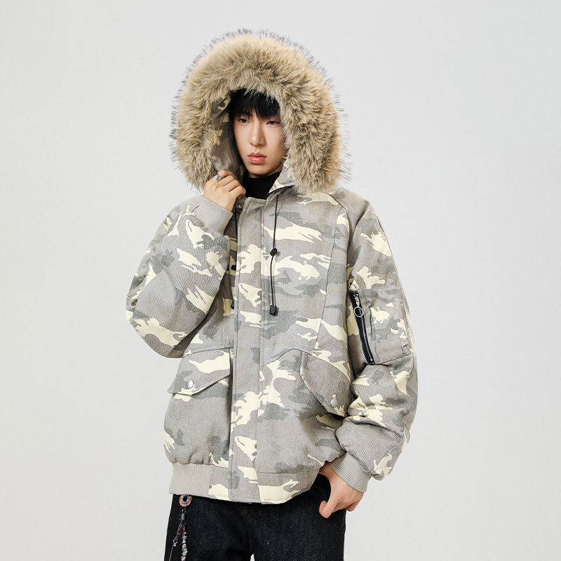 加厚保暖情侣户外棉衣 2025新款 WASSUP潮牌迷彩绒毛帽衫 外套男冬季