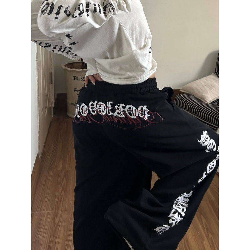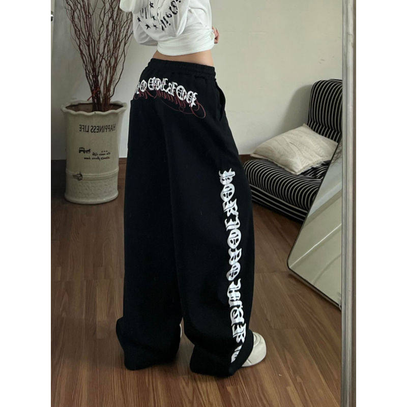 女秋冬宽松阔腿爵士舞拖地裤 大码 卫裤 复古哥特风运动裤 潮 胖mm美式