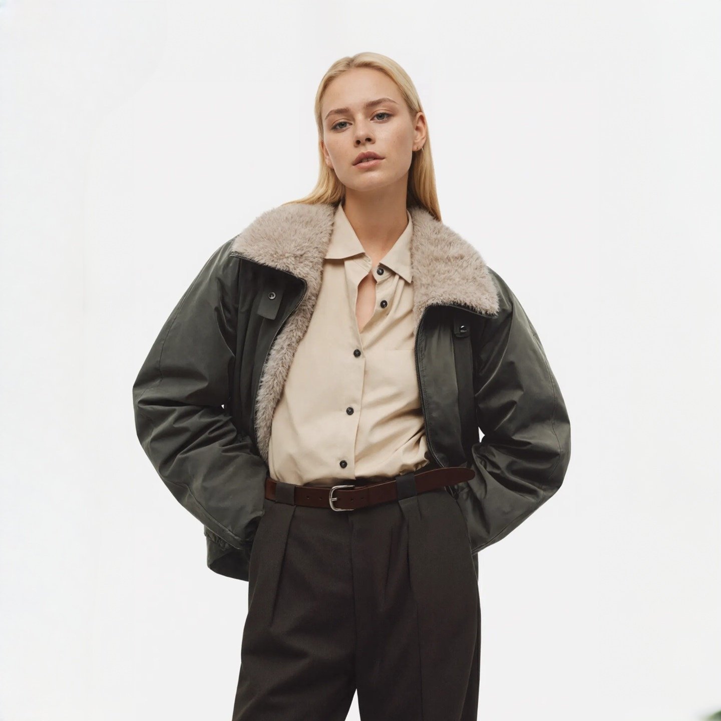 aaaaxbbb 狐狸毛领派克服白鸭绒羽绒服秋冬保暖上衣外套 飞行周末
