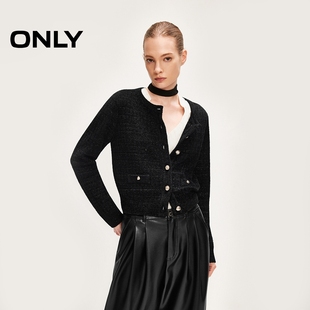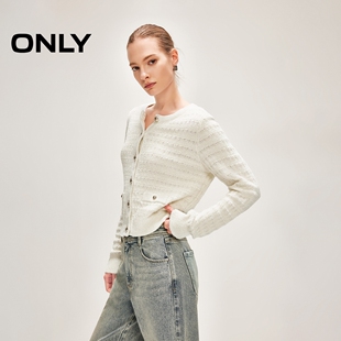 针织衫 ONLY2026春季 长袖 小香风圆领正肩金属排扣开衫 上衣女 新款