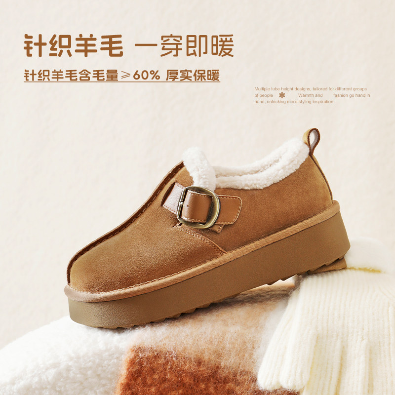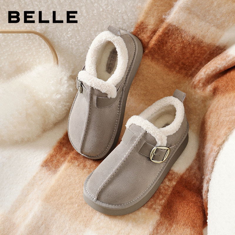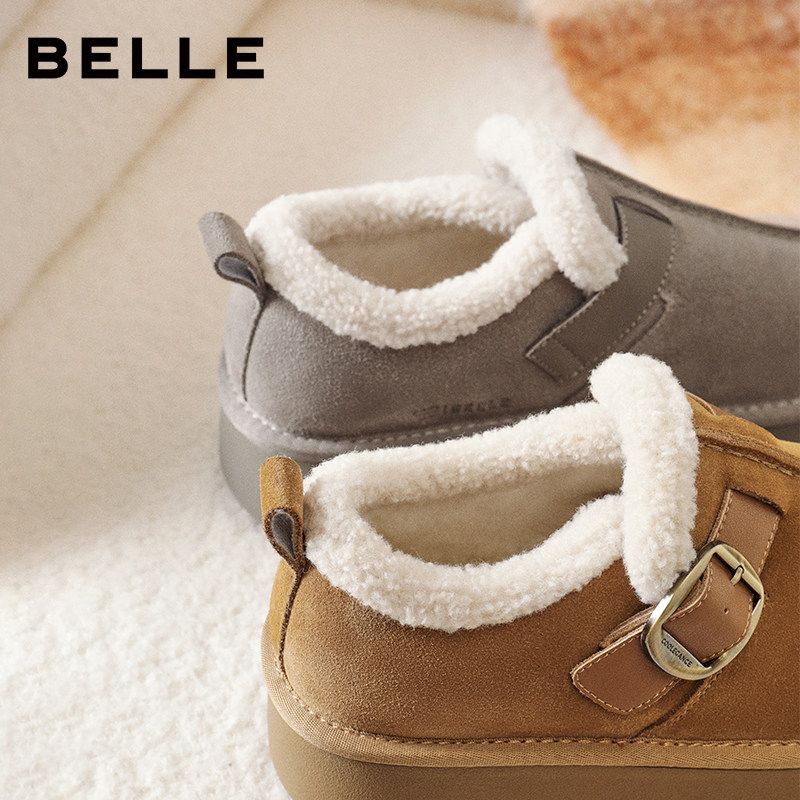 E6D1DDM5预 加绒保暖棉鞋 百丽毛毛乐福勃肯鞋 厚底雪地靴2025冬新款