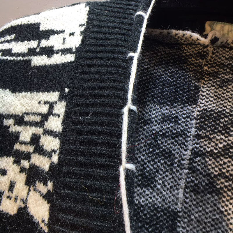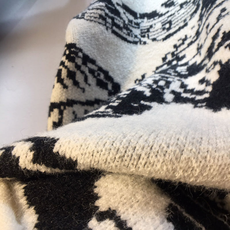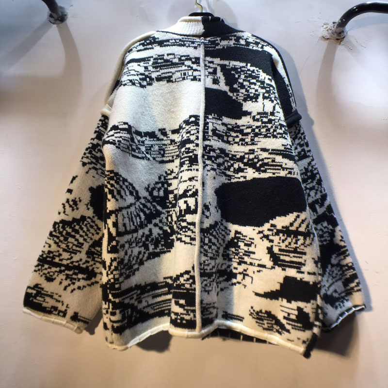 毛衣 黑白撞色拼色乱针修补双面提花复古针织开衫 气质款 秋冬新款
