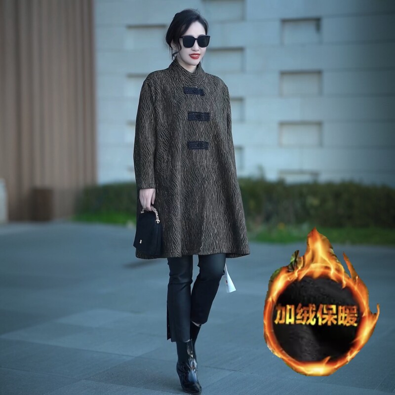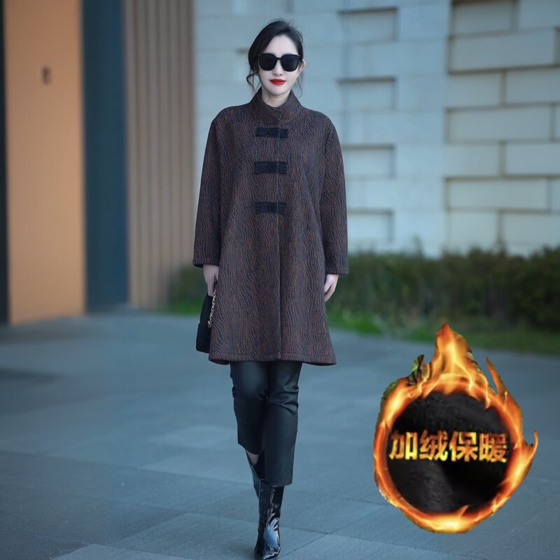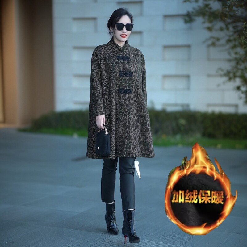 宽松大衣外套 中长款 高端贵气提花加绒加厚保暖风衣冬季 气质妈妈装