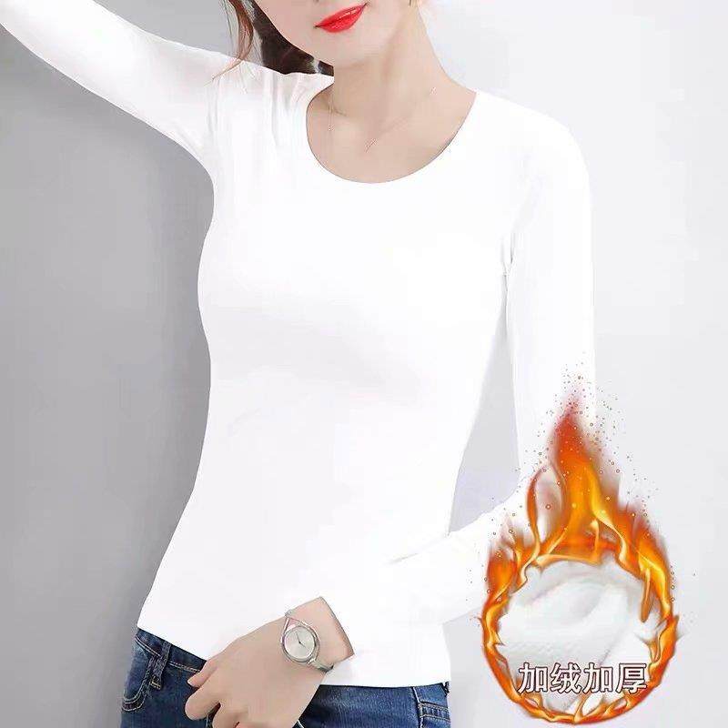 solid long round women velvet tops neck bottoming thermal