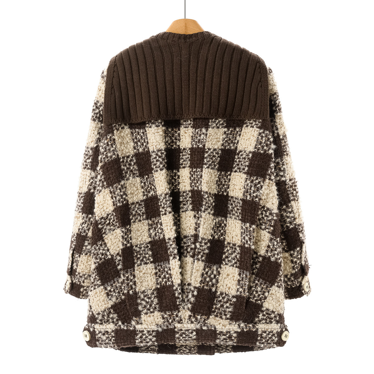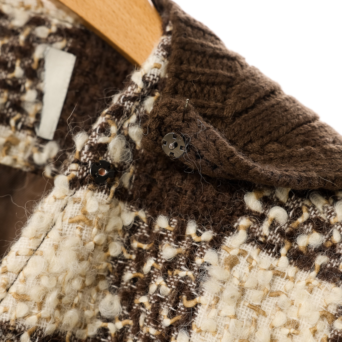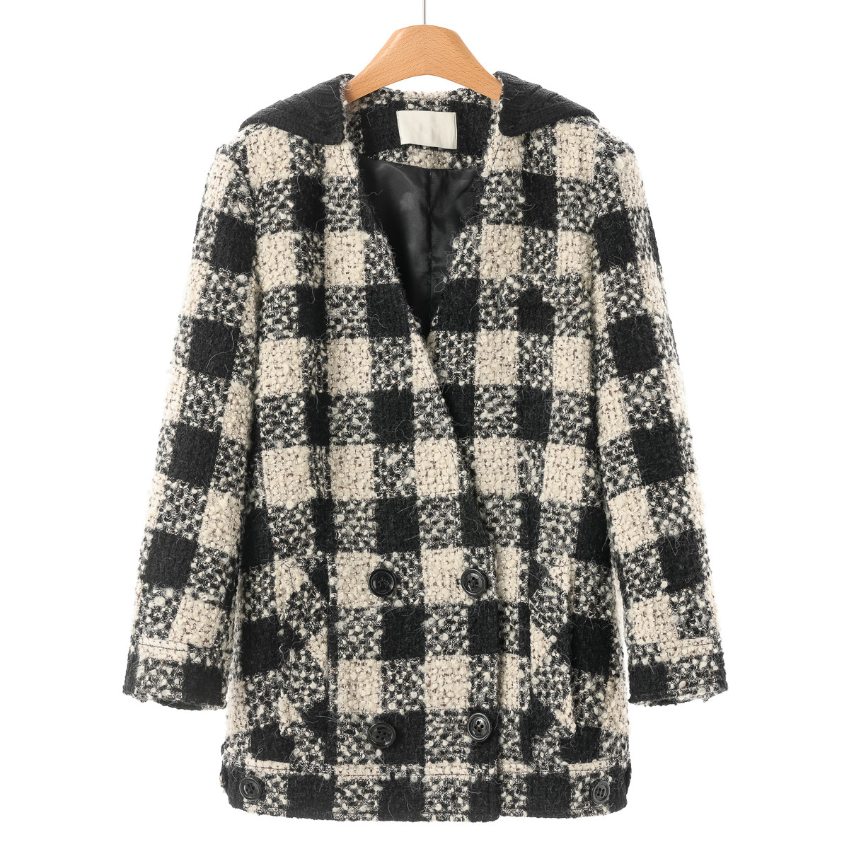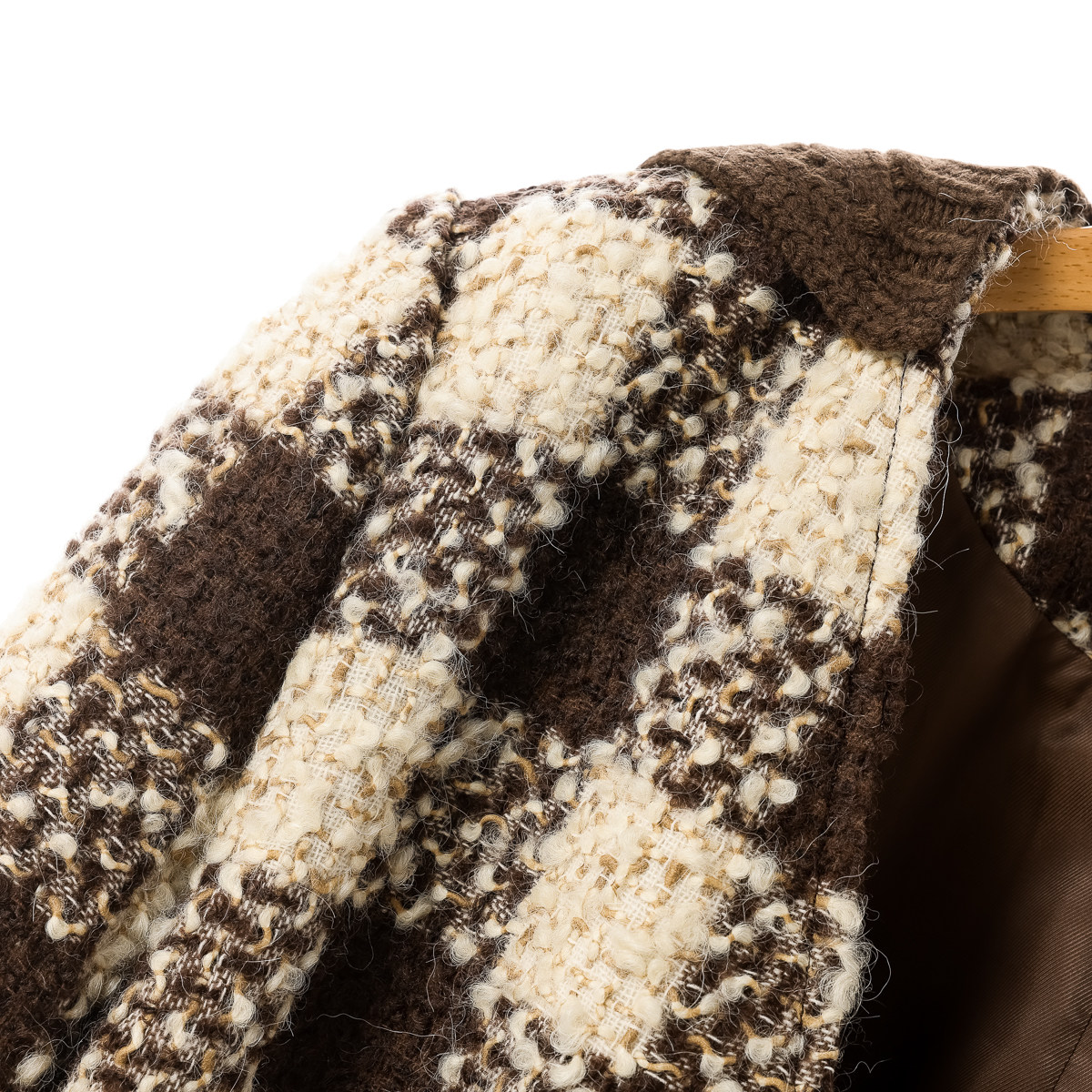 冬装 专柜2399 帝 10%羊驼毛 复古格子呢大衣845剪 30%绵羊毛