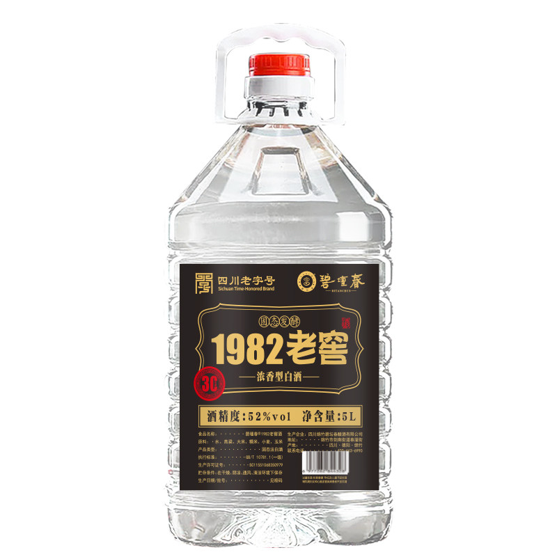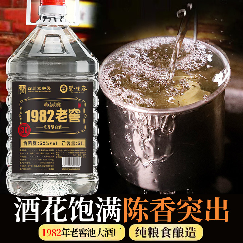 52度浓香型纯粮食白酒四川绵竹十斤大桶装 正品 碧坛春1982老窖酒