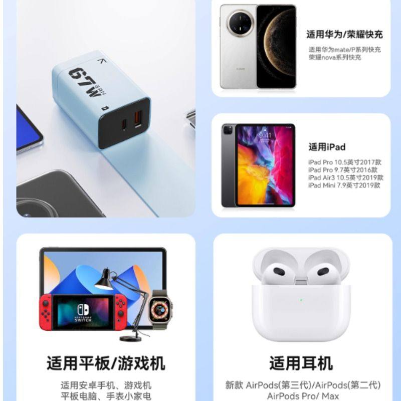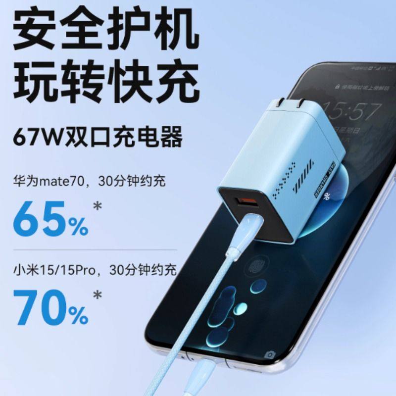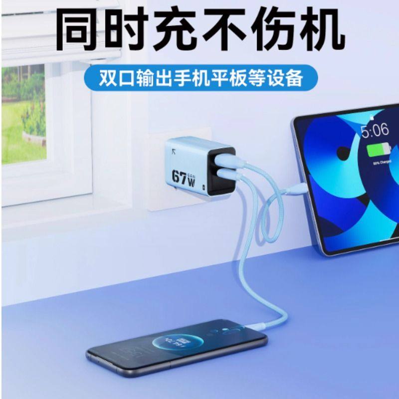 iPad笔记本电脑66W闪充通用插头 c套装 67W氮化镓充电器适用苹果17Promax华为安卓手机双口折叠快充头正品 type