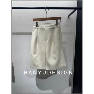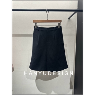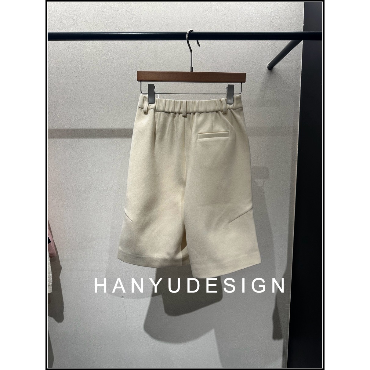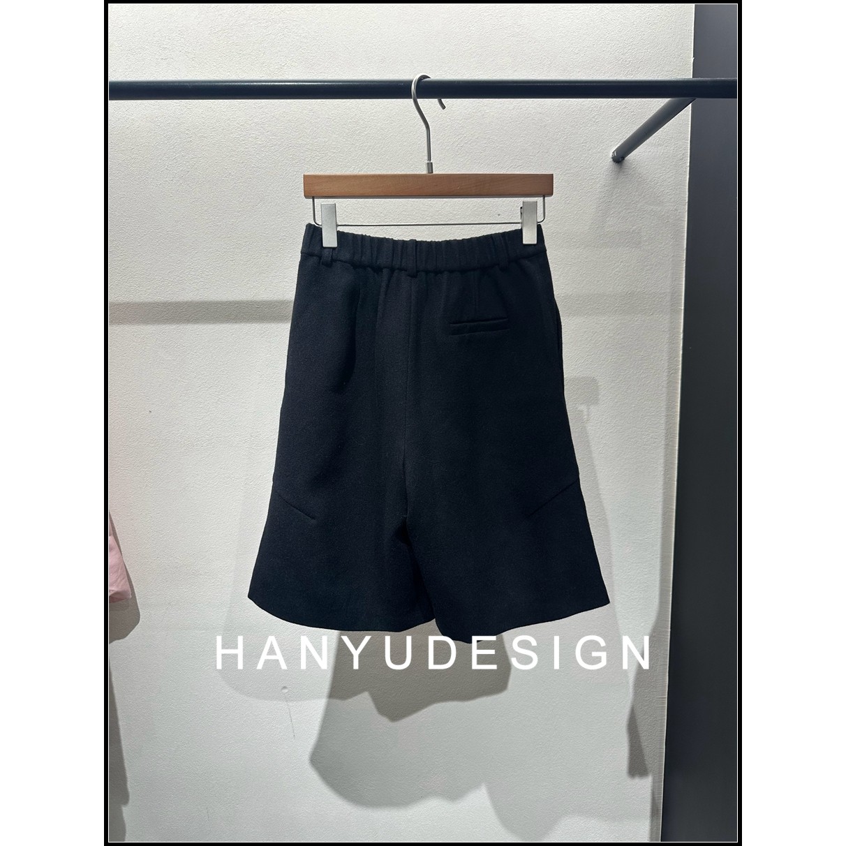 羊毛呢子休闲裤 通勤简约风高腰宽松五分裤 韩钰DESIGN