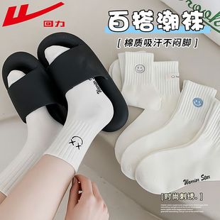 纯白色新疆棉中筒袜防臭百搭运动袜 春秋季 回力100%正品 袜子女款